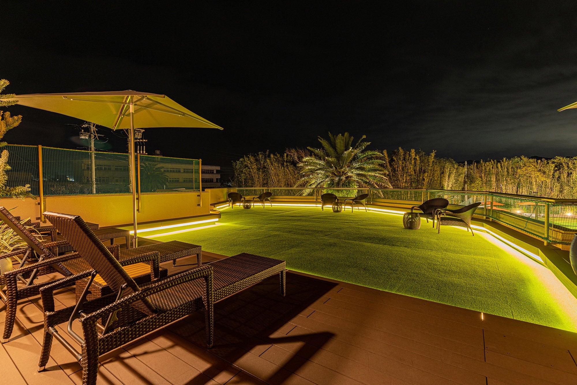 アフターディナーのひとときおいしいディナーをたっぷりと楽しんだ後は、館内にあるもうひとつのドッグランで楽しい食休みのひとときをどうぞ。2F屋上にご用意した人口芝のドッグランは、お風呂上がりや部屋着のままでもご利用いただける気軽なプレイスペースです。ムードあふれる夜の雰囲気もまたひときわ。屋上ドッグランからは満天の星空はもちろん、ライトアップされた周囲の原生林や地上ドッグランなど「DANQOO」周囲の夜景もご覧いただけます。