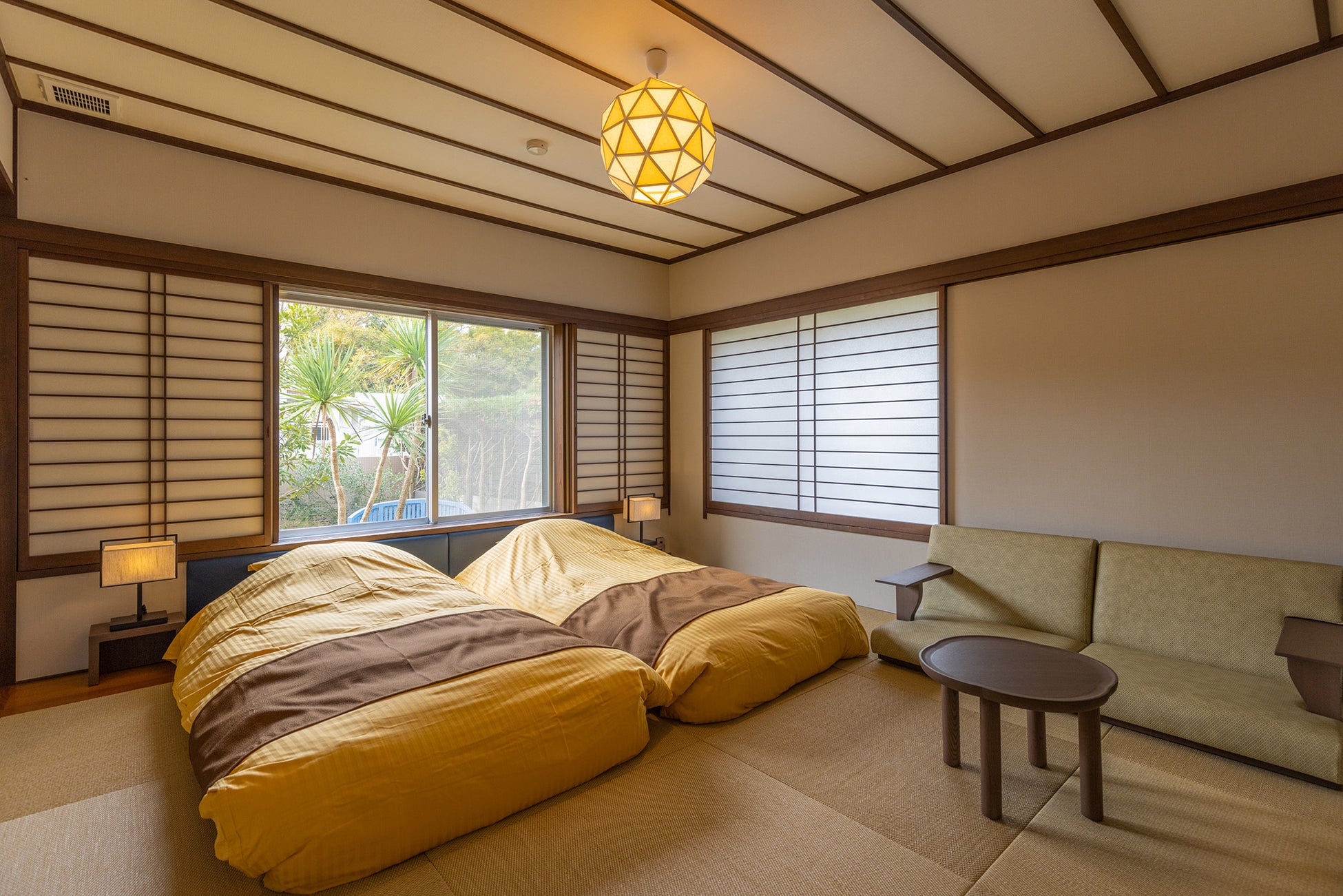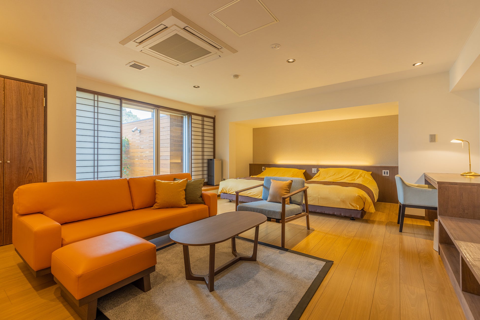 お部屋はゆったりお寛ぎいただけるスタンダードな和室をはじめ、リビングセットにベッドのある洋室まで全10室。広い専用庭園のあるタイプから天然温泉の半露天風呂付客室、さらに愛犬も一緒に愉しめるジェットバス付客室など、目的やご希望に応じてお選びいただけます。すべてのお部屋はワンちゃんの足にやさしく、うっかり粗相をしても安心の撥水性内装材を使用いたしました。