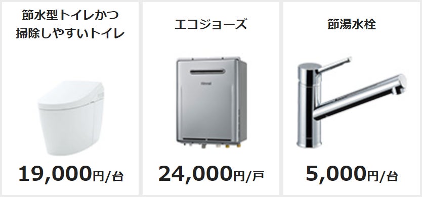 節水型トイレや高効率給湯器(エコジョーズ)など、エコな商品が必ず1つ含まれている必要があります。
