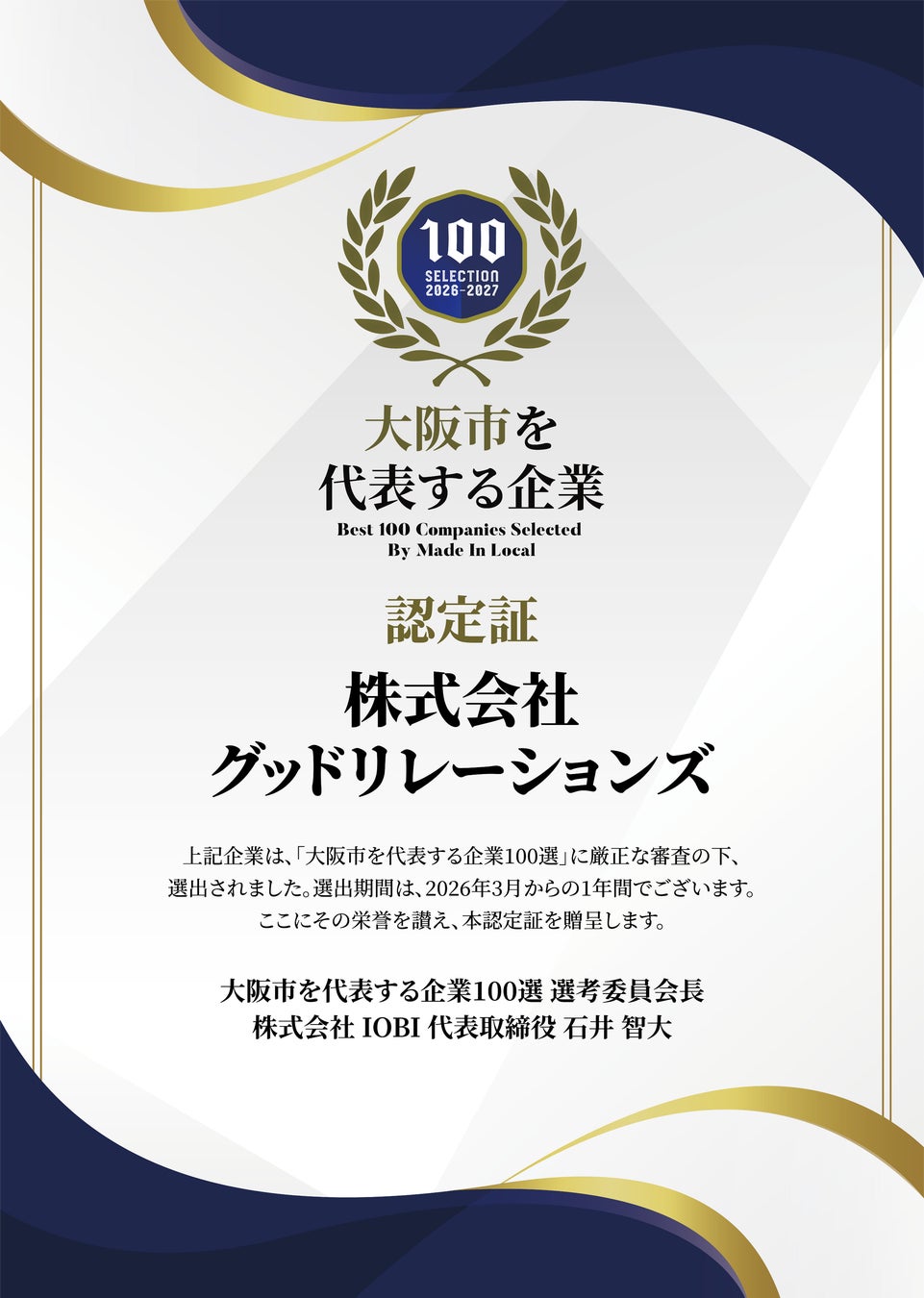 株式会社グッドリレーションズ、「大阪市を代表する企業100選」に選出