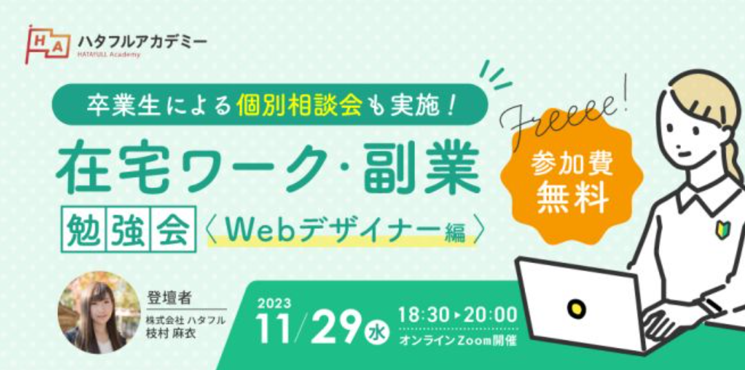 カリキュラムやサポートなどの詳しい説明をお伝えしている他、キャリア相談や質問、不安な点などもお気軽にご相談ください。(https://academy.hatafull.co.jp/#Application)