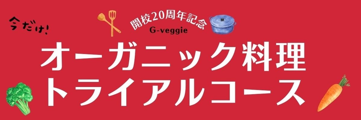 株式会社オンリーワン(所在地:東京中央区 代表取締役:田中清人)が運営する、オーガニック料理教室G-veggie(ジィ・ベジー/所在地:東京大田区)は、開校20周年を記念して、2026年4月より「オーガニック料理基礎コース《3回トライアルコース》」(税込33,000円)を新設します。