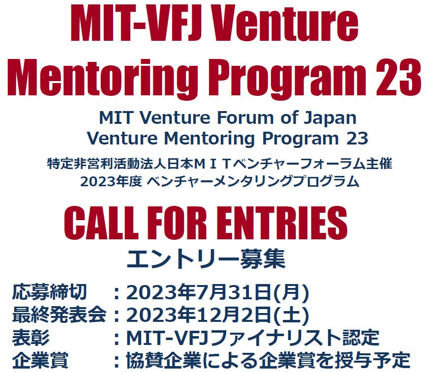 MIT-VFJ 主催 第23回ベンチャーメンタリングプログラム(VMP23) エントリー受付開始