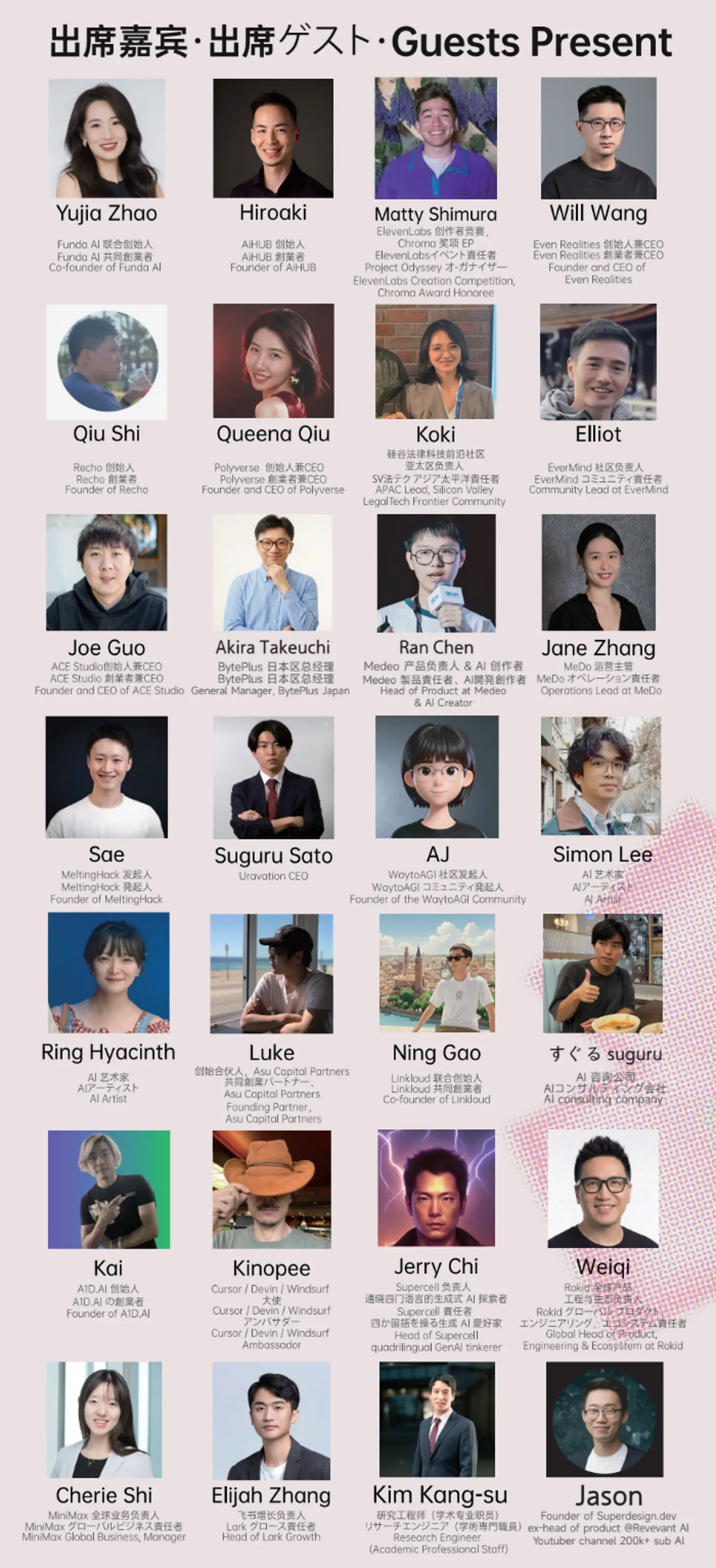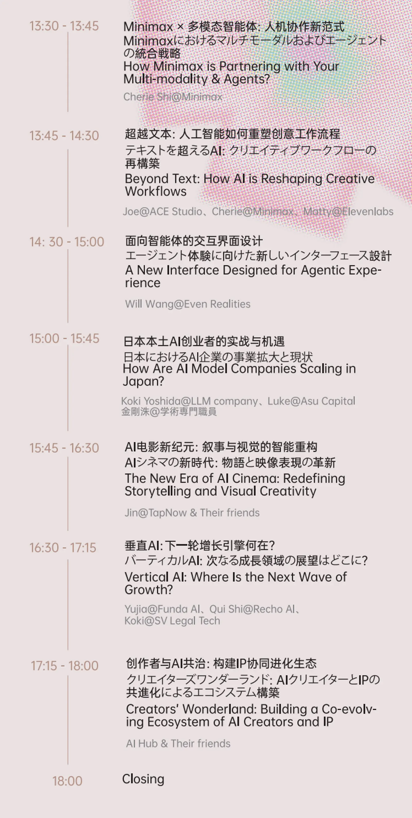 本大会は、日本最大級のWeb3・AI国際イベント「TEAMZ Summit 2026」と同時開催。MiniMax、Rokid、Byteplus、ElevenLabs、AiHUBといった脚光を浴びるAI企業のキーマンが登壇し、400年の歴史を持つ名園で、AGI(人工汎用知能)時代の最前線を体感する特別な1日を提供します。