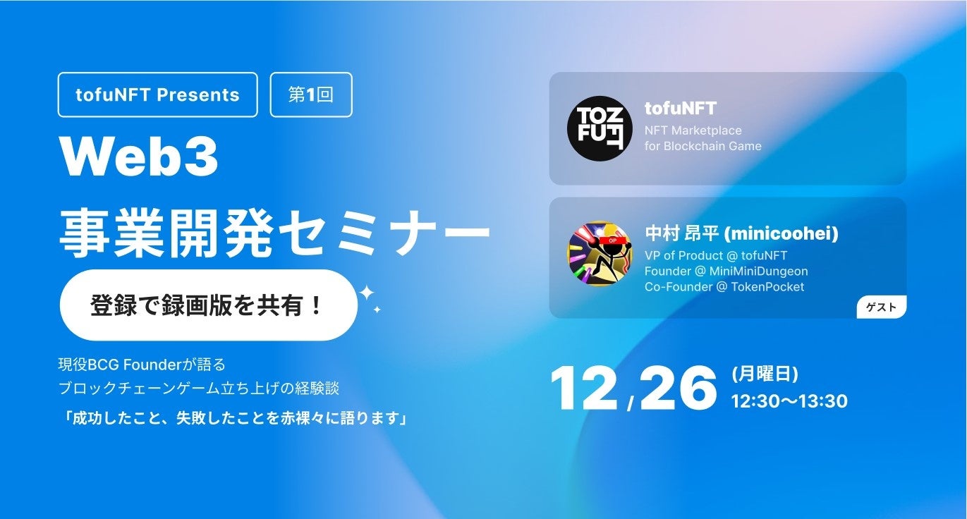 NFTマーケットプレイスtofuNFT、ブロックチェーンゲーム開発者向け特別オンラインセミナーを開催
