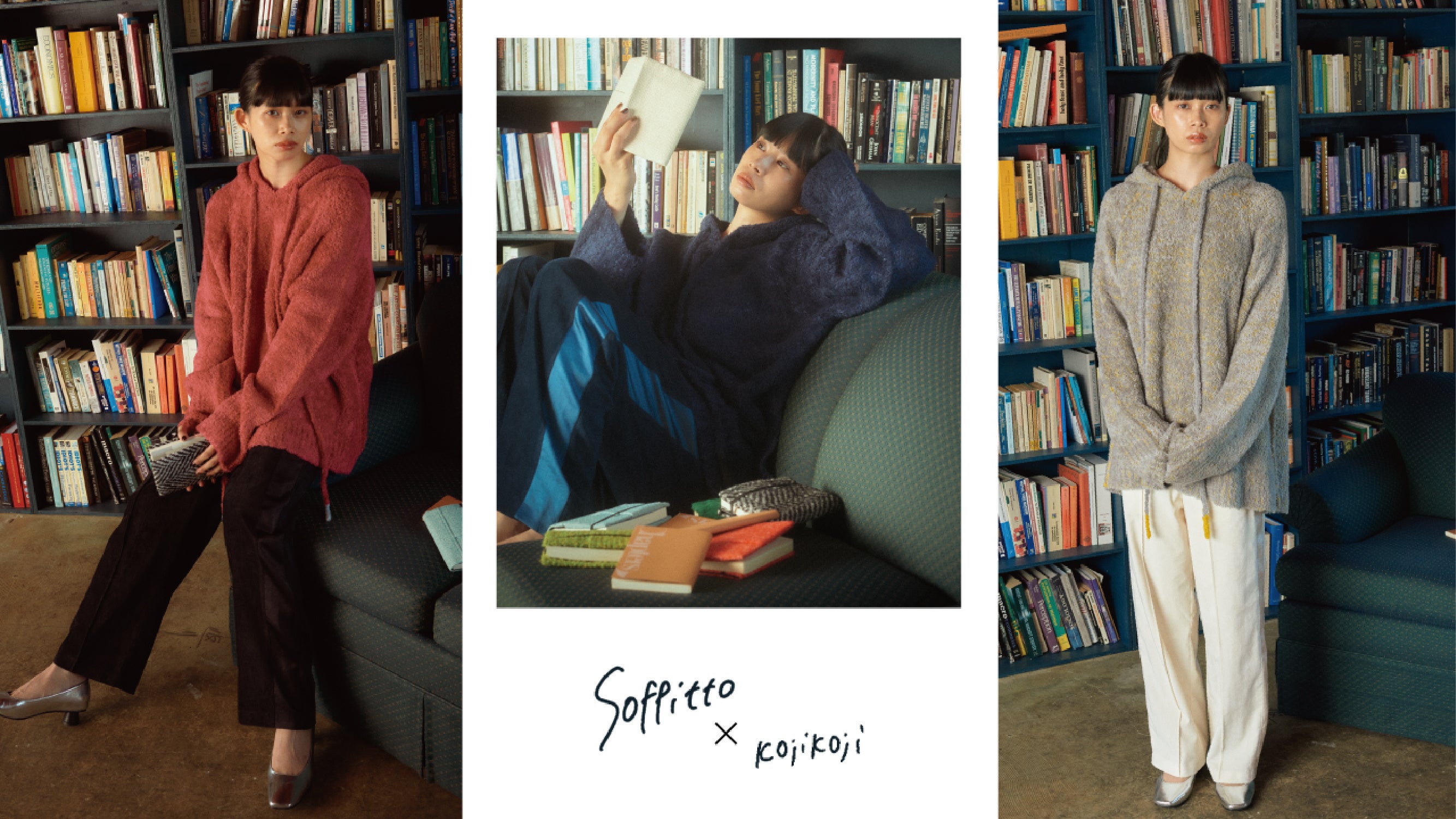 また今回のコラボレーションに際して、変態紳士クラブ、空音、Lucky Tapes、大橋トリオなど数多くの作品への客演参加やBASIのライブバンドの一員としてもコーラス/ギターを担当し、次世代のシンガーソングライターとして注目を集めるkojikojiが、Chapters書店のサービスからインスピレーションを受けた楽曲「金柑」も新規で書き下ろし。見る人の読書欲をくすぐる美しい歌詞とMVに仕上がりました。kojikojiデザインによるリラックスして読書を楽しめるフーディとベロアパンツも、2023年11月3日よりSoffitto店頭・オンラインにて限定発売します。