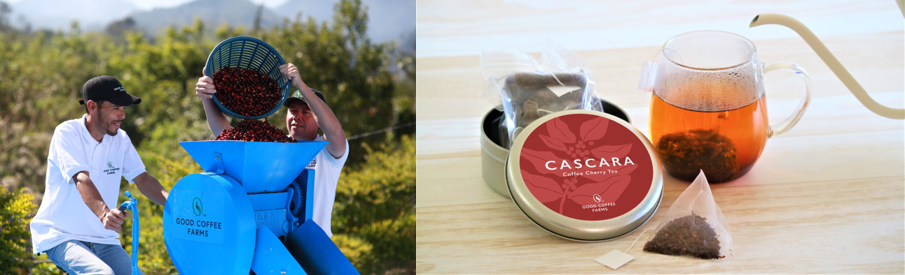 「コーヒーで世界を変えよう。」水、電気、燃料使用ゼロの自転車でつくるGOODなコーヒープロジェクト。今回はコーヒー以外にもコーヒーの赤い実「コーヒーチェリー」から種を取り出した後の果皮をドライフルーツのように乾燥させたカスカラティーも登場。一般的なコーヒー農家ではコーヒーチェリーの40%を占める果皮のほとんどが大量廃棄されているが、カスカラティーとして商品化することで環境汚染を防ぐ他、生産者の新たな収入源をつくることもできている環境にも人にも優しいアップサイクルなブランド。