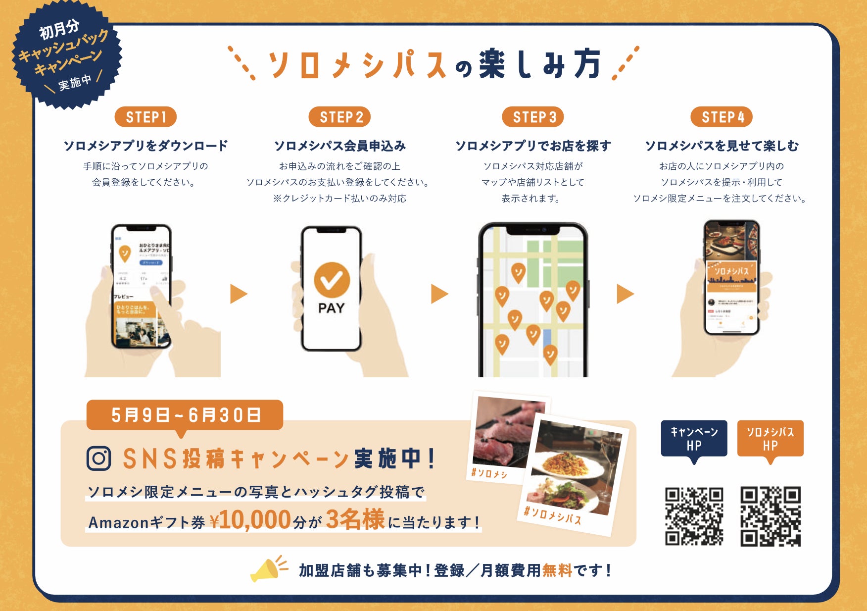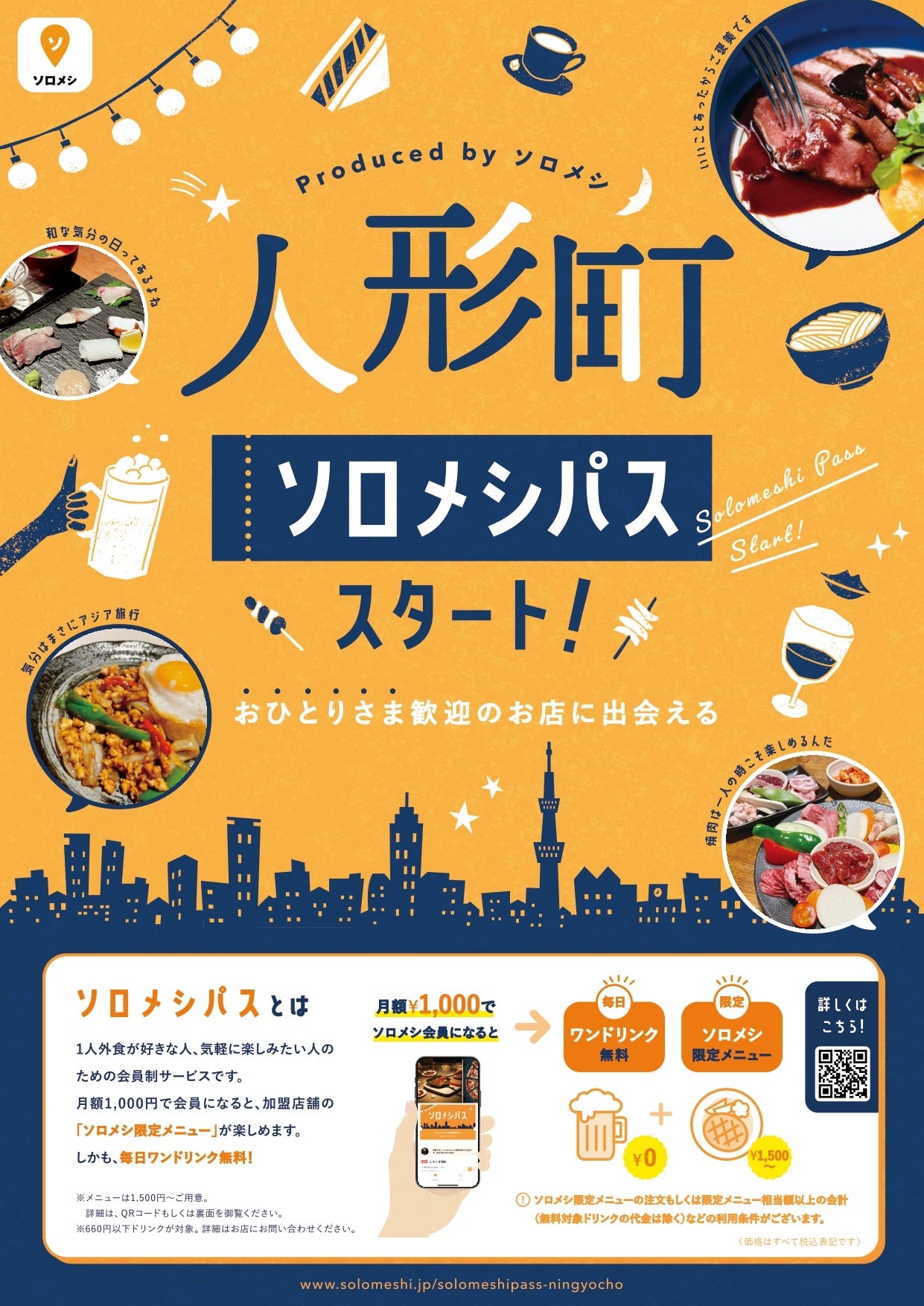 おひとりさまをもっと気軽に! 1人外食が好きな人、チャレンジしたい人のための、おトクな会員制サービス「ソロメシパス」が人形町からスタート!