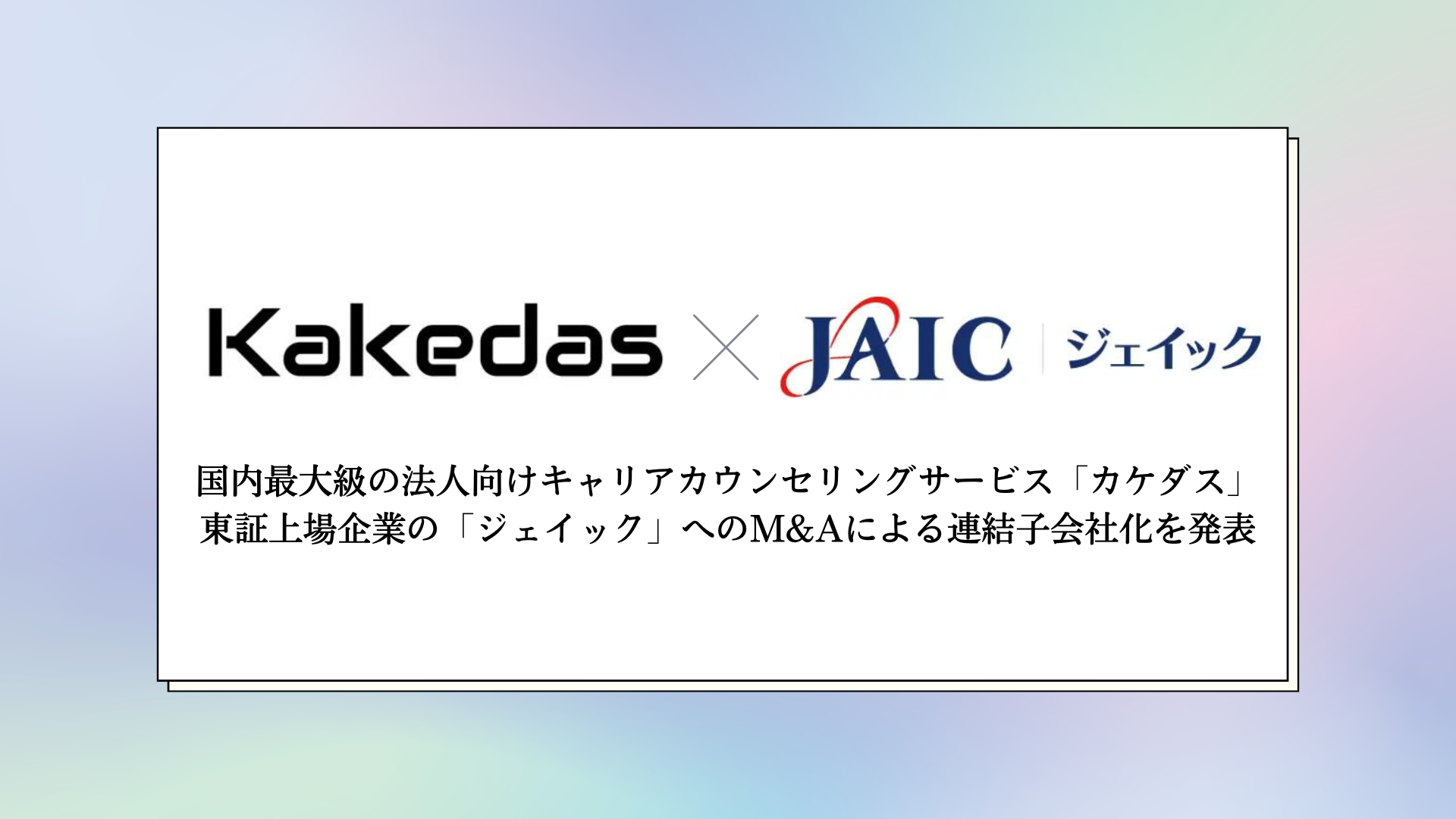 国内最大級の法人向けキャリアカウンセリングサービスを提供する「カケダス」が、東証上場企業の「ジェイック」へのM&Aによる連結子会社化を発表