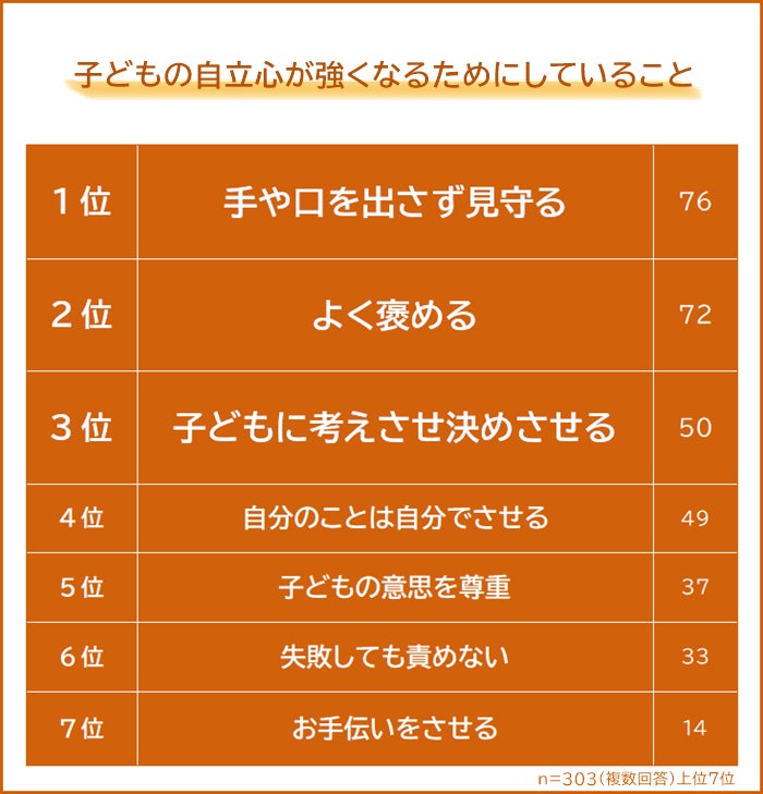 【自立心が強い子になるためにしていることランキング】パパ・ママ303人アンケート調査