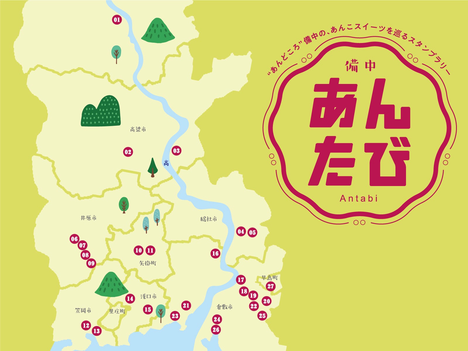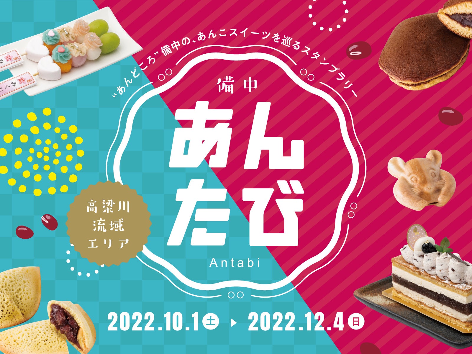 「備中あんたび」とは、日本の三大小豆産地のひとつである岡山県の備中地域において、27種のあんこスイーツを巡るタンプラリーイベントです。倉敷市主催のもと、高梁川流域圏の7市2町(新見市・高梁市・総社市・早島町・倉敷市・矢掛町・井原市・浅口市・笠岡市)が連携し、私ども日本あんこ協会が監修協力する形で開催致します。