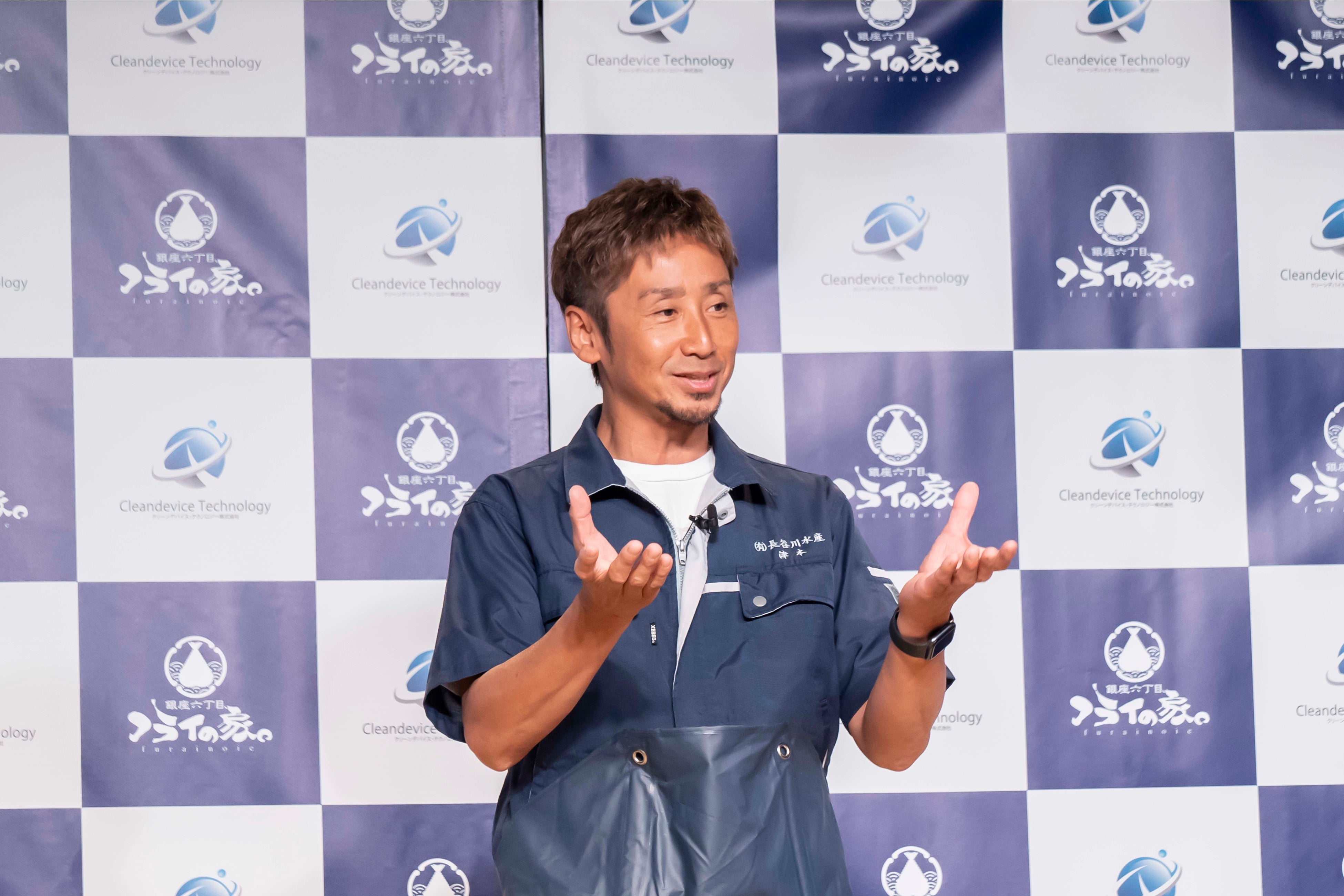 津本さんの普段の仕事については「魚の仕立て屋さんですね。料理屋さん専門に、お客様のニーズに合わせた魚の下準備をしています。」と話しました。また、特長については「魚の磯臭さや泥臭さって、実は全部血が腐っているから発生するんです。普通死んだ魚の血を抜くこ