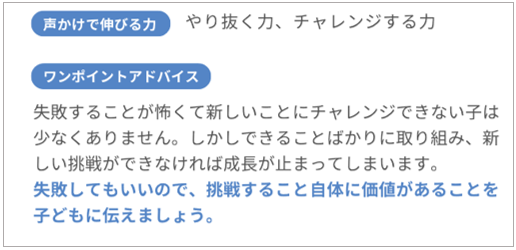 ■声かけで伸びる力・ワンポイントアドバイスを記載!