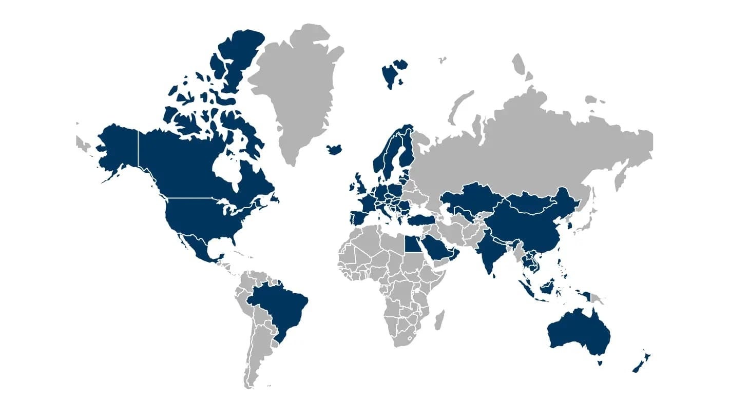 21. モンゴル, 22. ウズベキスタン, 23. カザフスタン, 24. オーストラリア,