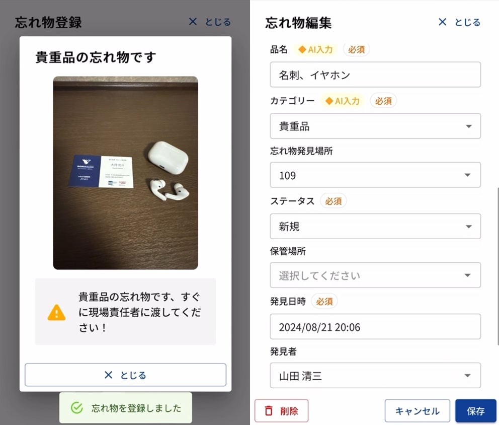 清掃スタッフが写真を撮るだけで忘れ物情報をカンタン自動登録、紙やエクセルの管理台帳も不要に