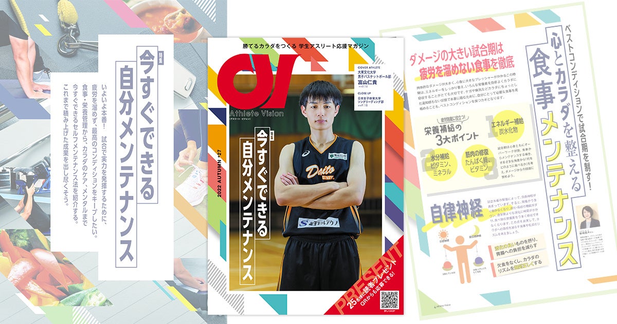 競技に役立つ!今すぐできる「自分メンテナンス」を特集。学生アスリート応援マガジン『アスリート・ビジョン』最新号は10月15日より無料配布
