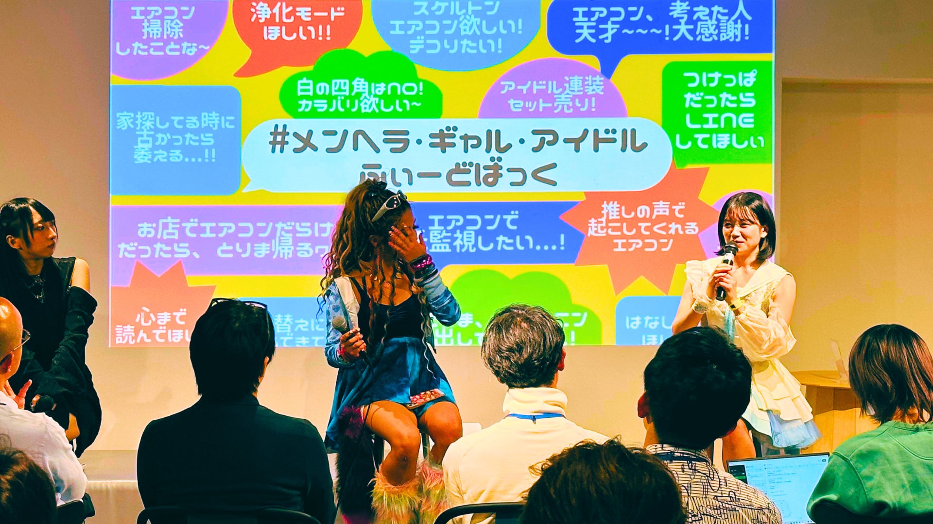 「メンヘラ」「ギャル」「アイドル」の各属性の特徴や消費行動についての解説、具体的なプロダクトをテーマとして取り上げ、各属性からの視点でライブディスカッションを実施
