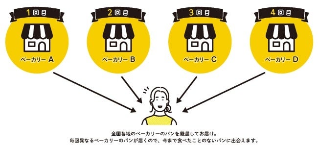 毎回、さまざまなベーカリーのパンをお楽しみいただけます。