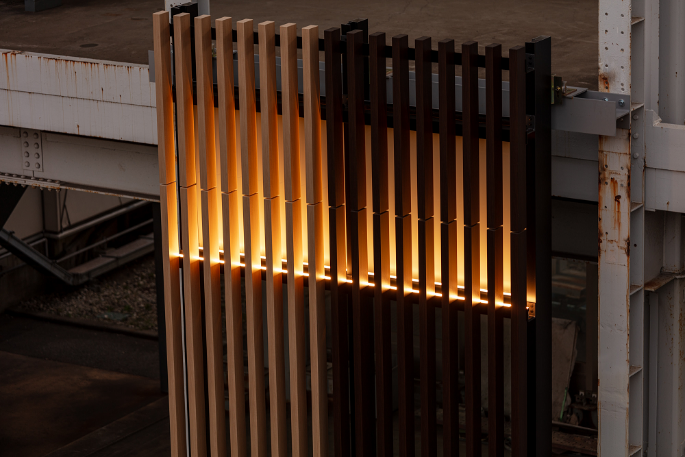 ストリンガー材(横部材)に設置したLEDからライトアップ。