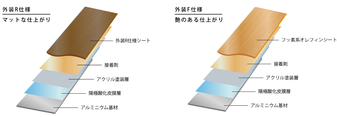 外装R仕様はSWOM※ にて、10,000時間、 外装F仕様は8,000時間の耐候性試験をクリア。