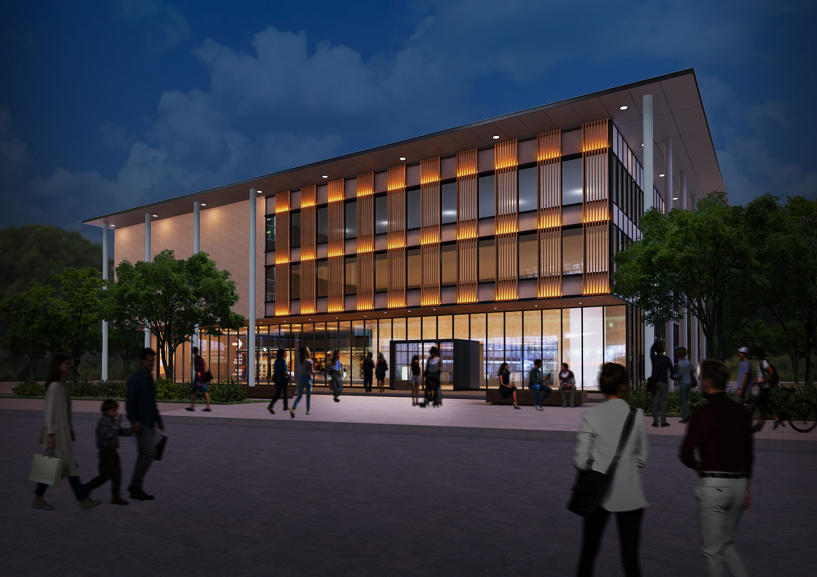 そこで、カーテンウォールにTOPPAN株式会社フォルティナ®の豊富な柄のシートラッピングを加え、さらに夜間にはルーバーシステム部材に設置した照明からライトアップするなど、昼夜ともに高い意匠性を備えながら、従来の省エネルギー性能にも寄与するファサードデザインを開発致しました。