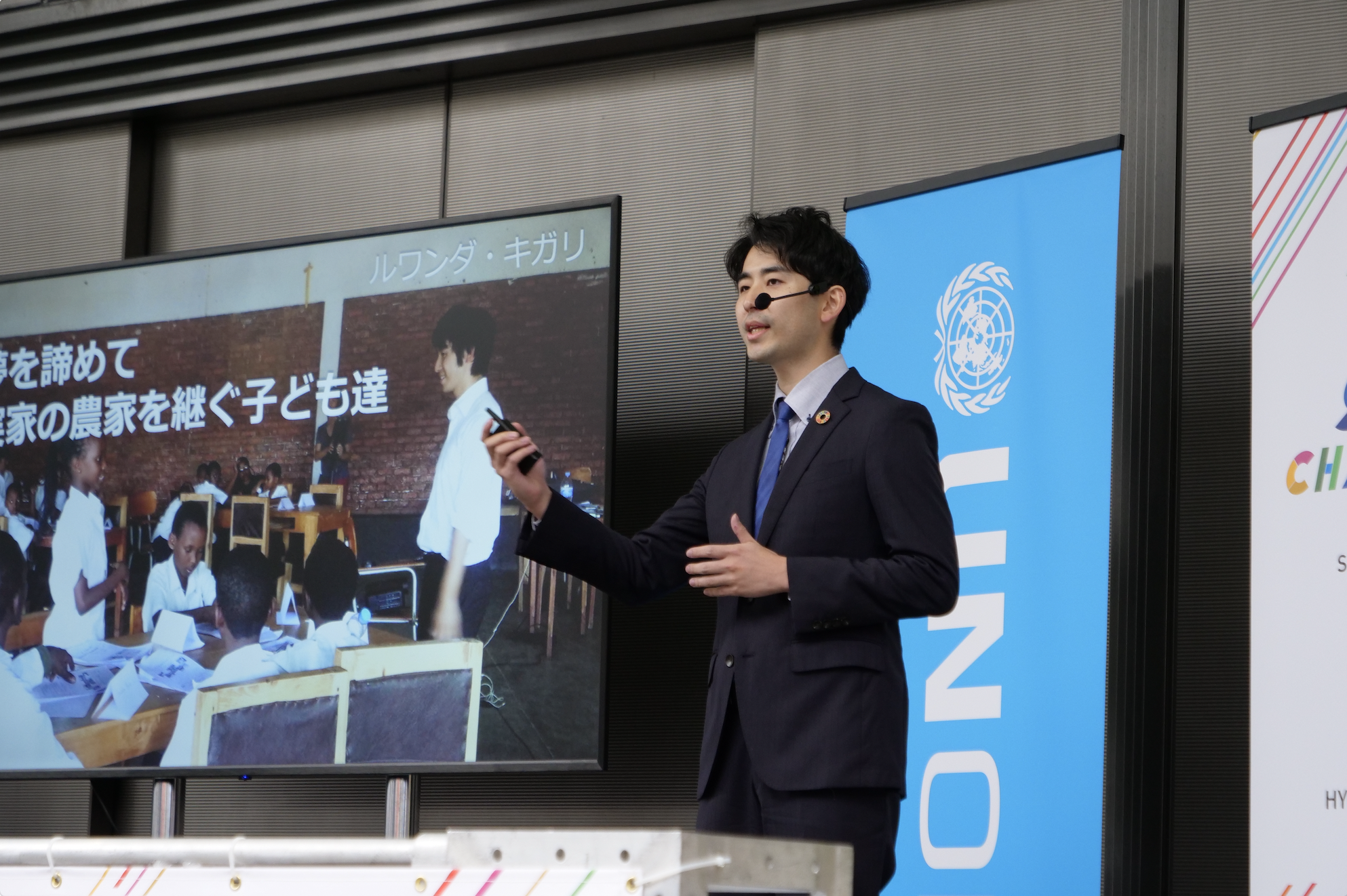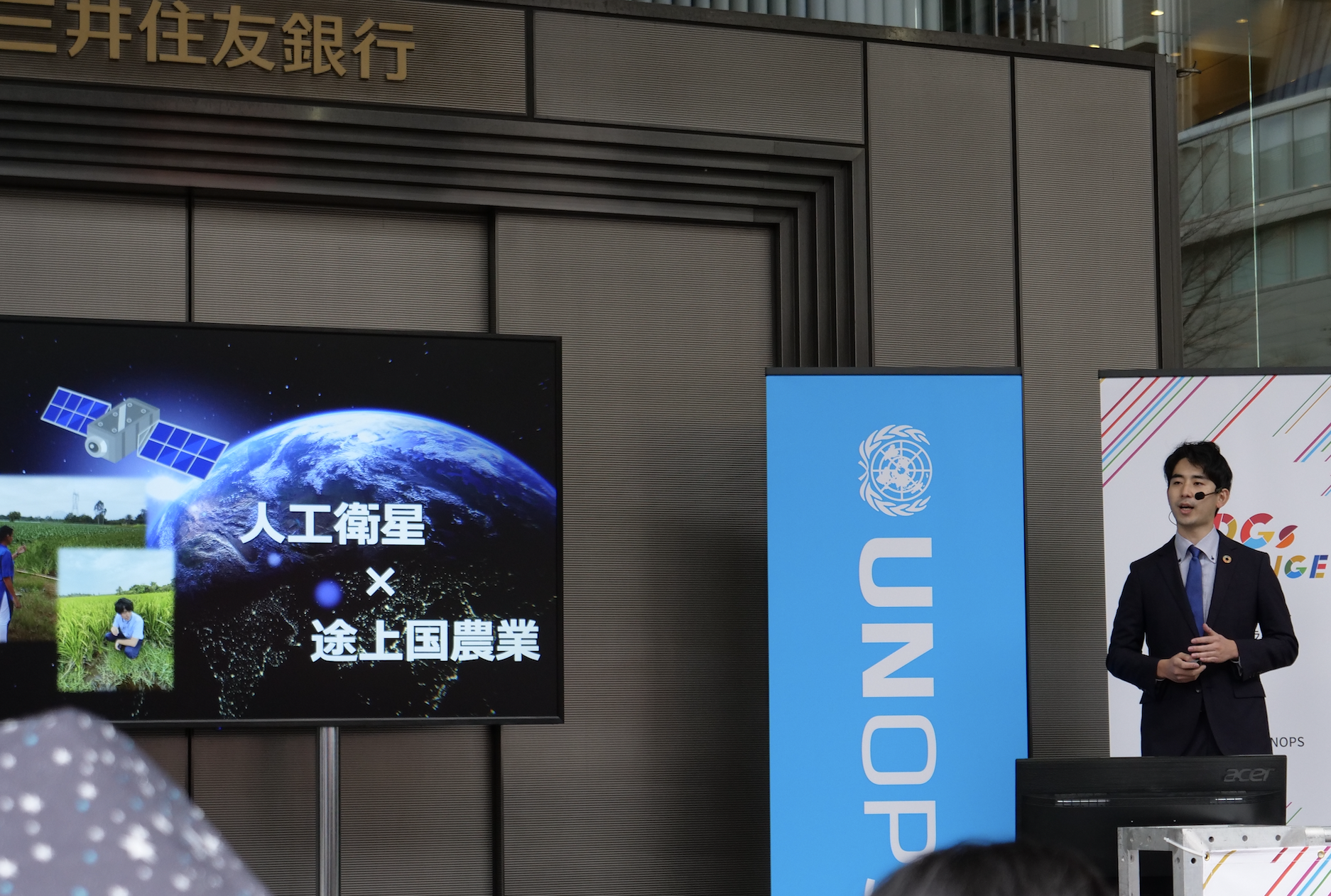 サグリ株式会社は、2018年6月に兵庫県で創業をしたスタートアップ企業です。当社では、2019年9月より、インド・ベンガルールに子会社を設立し、日本とインドの架け橋を行う、日印スタートアップハブの第一号案件となりました。今回、UNOPS Global Innovation Challengeを通じて、途上国農家への営農情報の展開及び現地マイクロファイナンス機関への農家の信用情報展開の両面の事業を確立し、その内容について発表を致しました。会場では約100名から150名の方が雨の中、プレゼンテーションを聞いて下さいました。