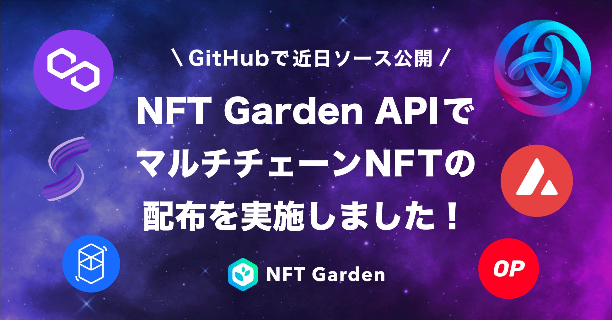 NFT GardenのAPI機能を使用したマルチチェーンNFT配布を実施し、NFT配布画面のサンプルコードは近日中にGitHubにて公開予定