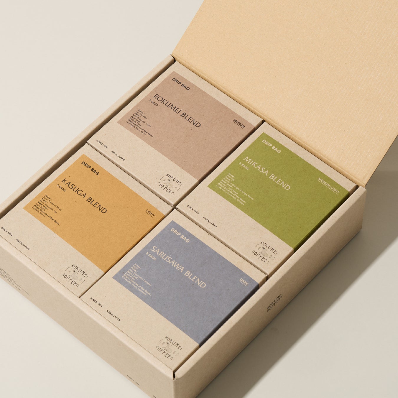 奈良の古都が宿す、静けさと豊かさを一杯に。ロクメイコーヒーが手がける「コトナラ」は、奈良の風土にインスパイアされたスペシャルティコーヒーのギフトセットです。上質な豆を丁寧に焙煎し、やわらかな甘みとクリーンな余韻が特徴。大切な人への贈り物に、奈良ならではのストーリーを添えて。