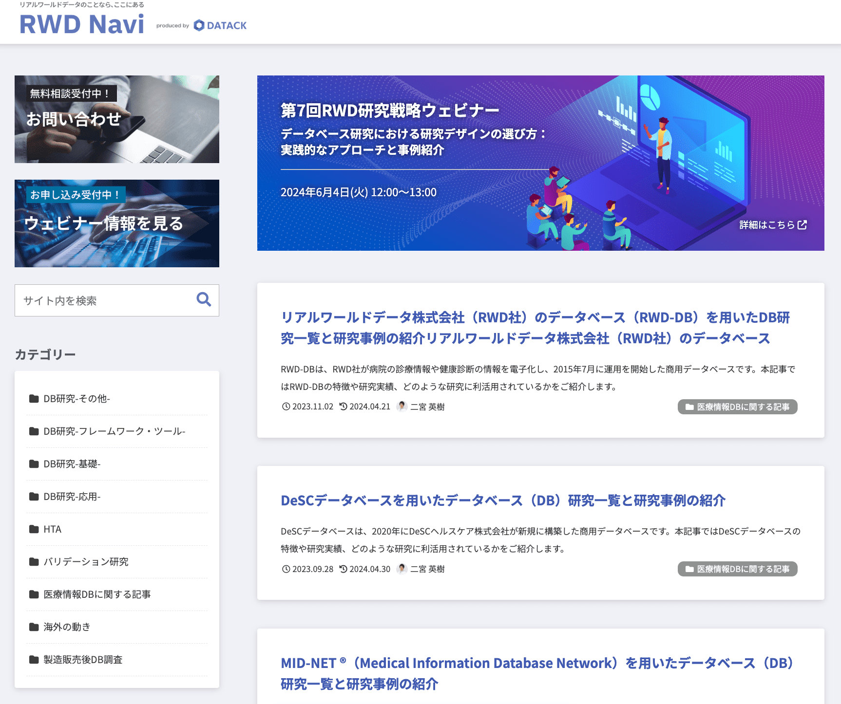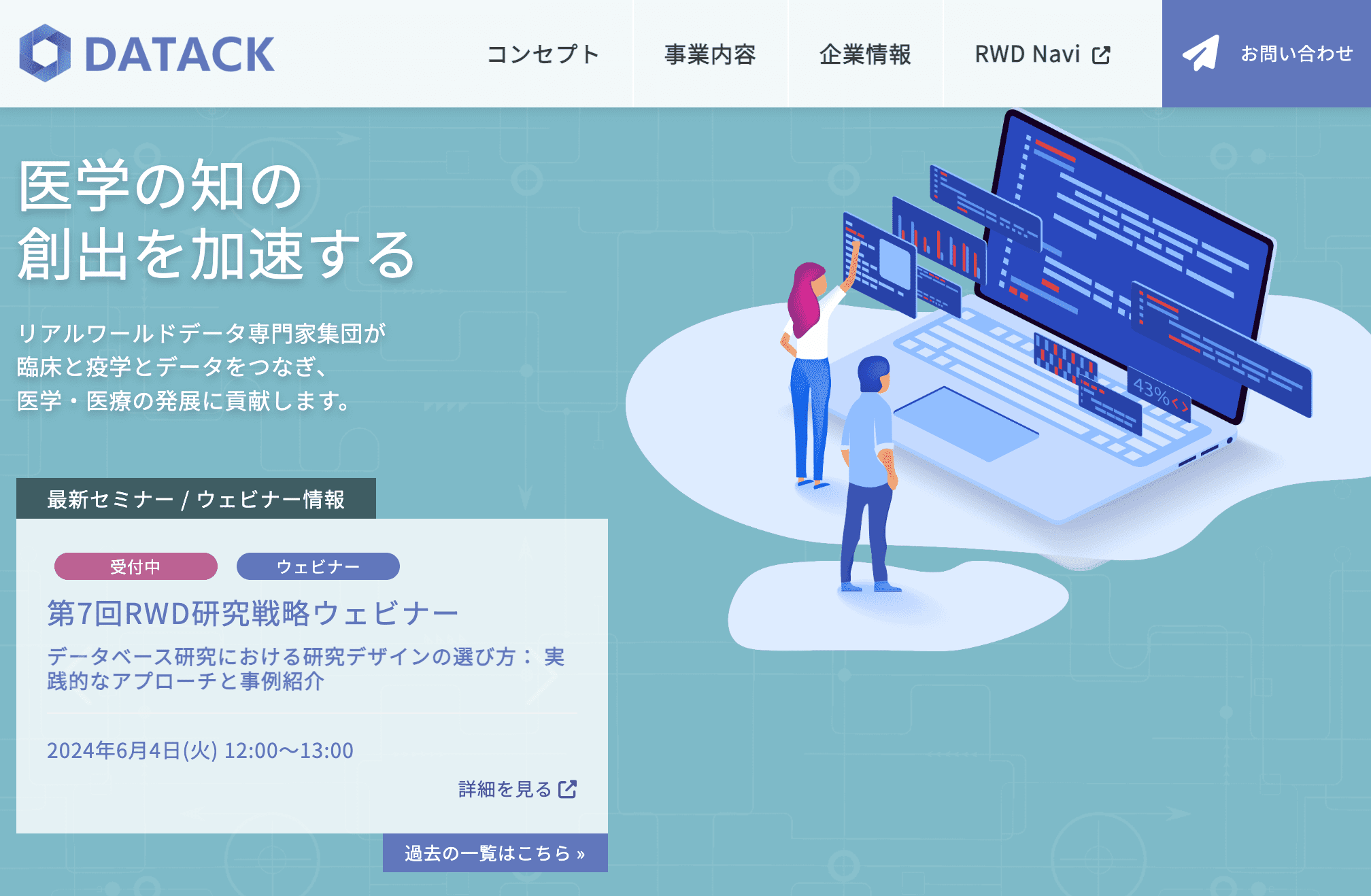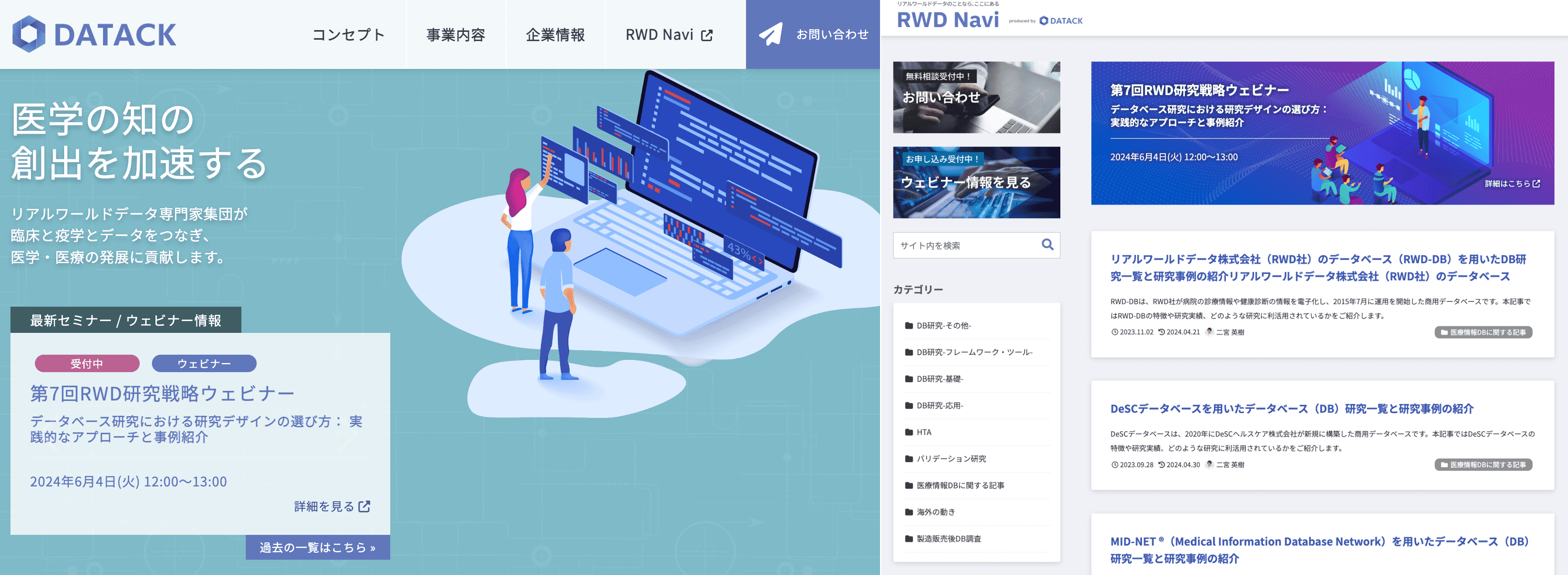 そうした状況において、製薬企業による研究の推進をさらに後押しするため、より一層の使いやすさ、充実した情報提供を目的として、このたび公式企業サイトおよびRWD Naviのリニューアルを実施しました。