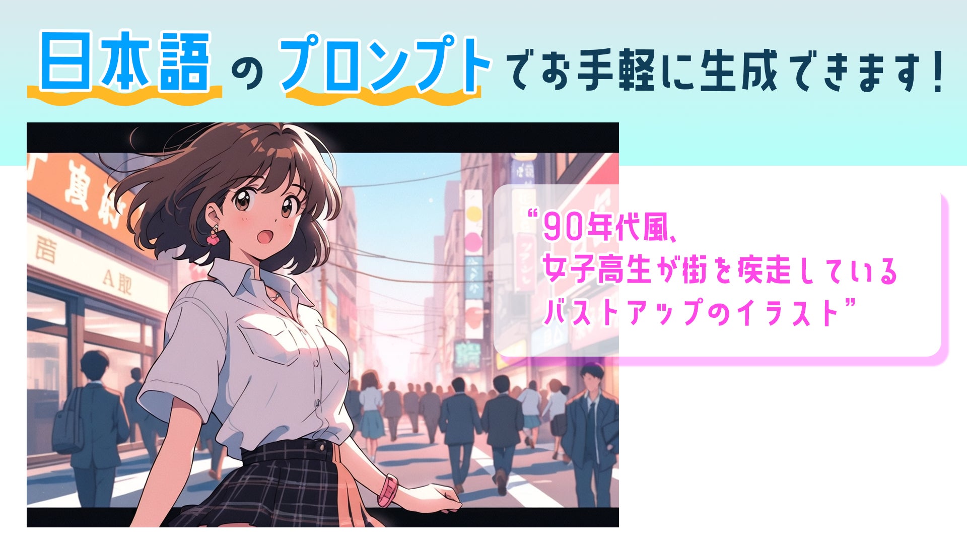 オープンソースの画像生成AI では、タグ区切りの英単語でイラストを生成する必要がありますが、copainter の画像生成では日本語の自然言語(一般的な言語入力)で生成を行うことが可能です。また、言語への忠実度も高いため、一般的な言語を普通に記入するだけで思い通りの画像を生成することができます。