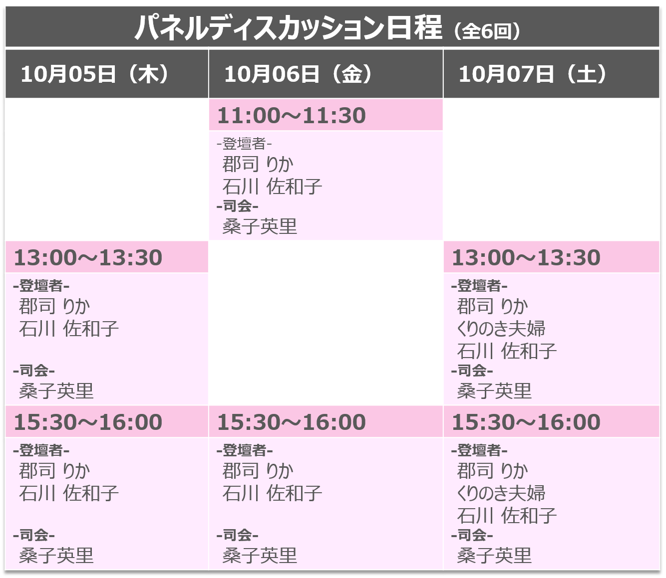 妊活系ユーチューバーの方達と3日間で計6回のパネルディスカッションを「ベビーライフ研究所のブース内(小間番号 3-58)」にて開催し、盛り上げていまいります。