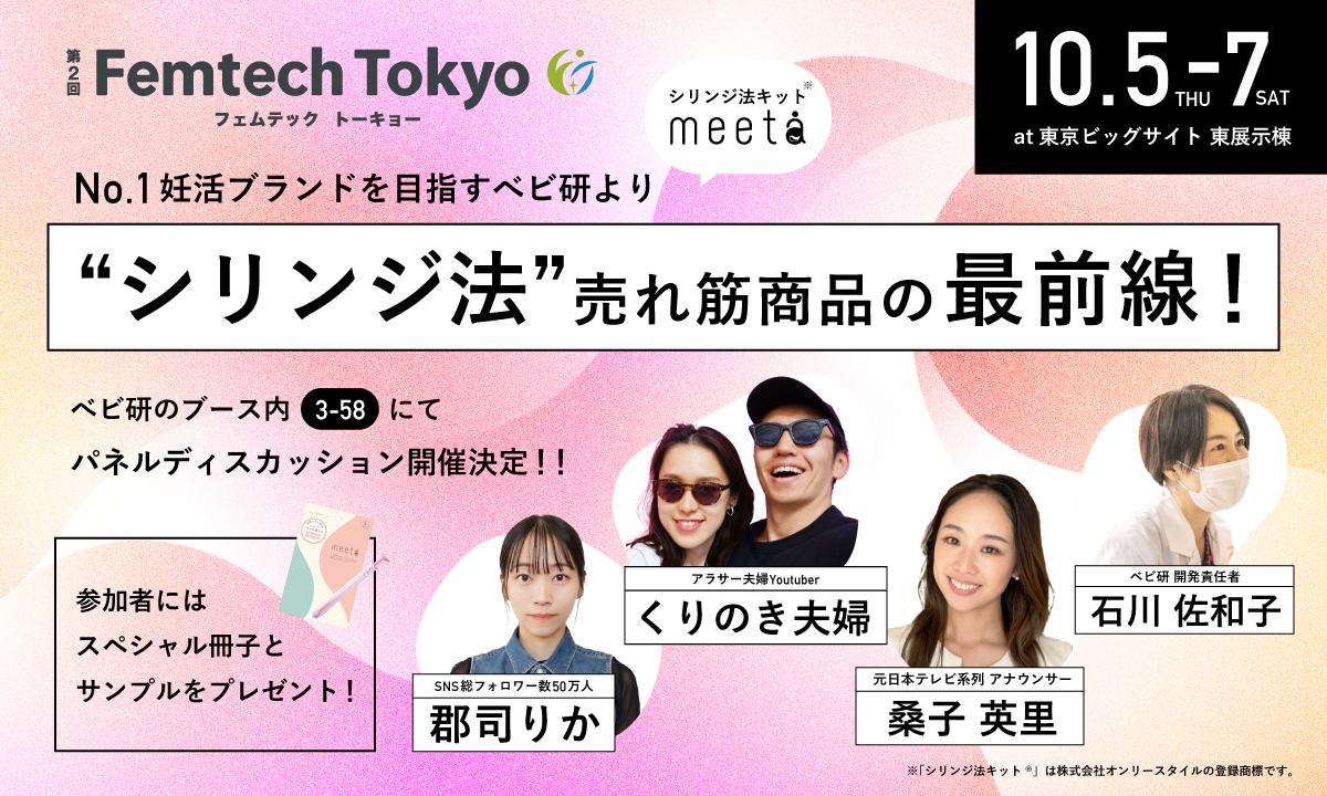【第2回 Femtech Tokyo】妊活系ユーチューバーとシリンジ法キットmeetaの開発者によるパネルディスカッションが、べビ研の出展ブース内で開催決定!