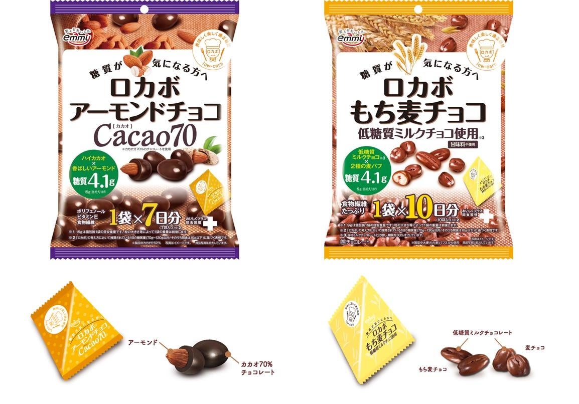 :ロカボ アーモンドチョコ カカオ70/もち麦チョコ…2022年8月より順次発売