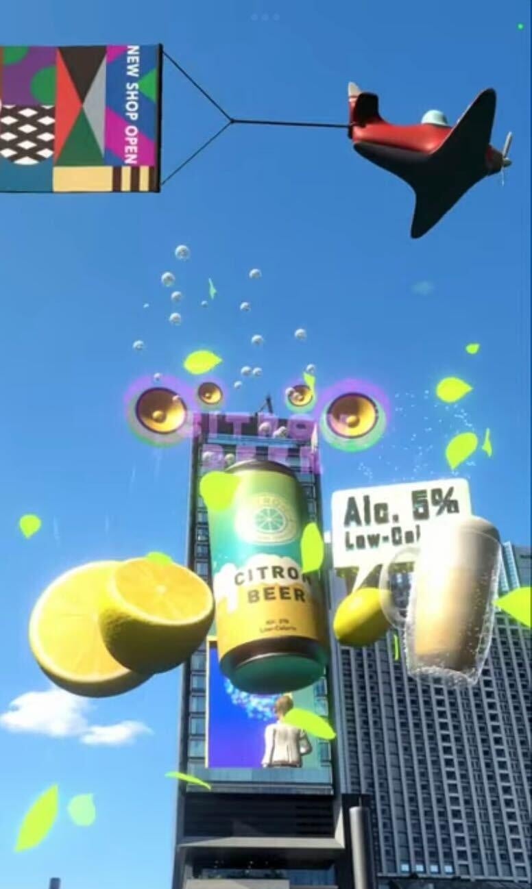 ARグラス(Nreal Light)に対応可能なVPSであるImmersalを使用し、広告用の3Dエフェクトを投影。スマートフォンとARグラスのそれぞれのデバイスで、視聴する際の視認性・明視性の違い等を検証しました。
