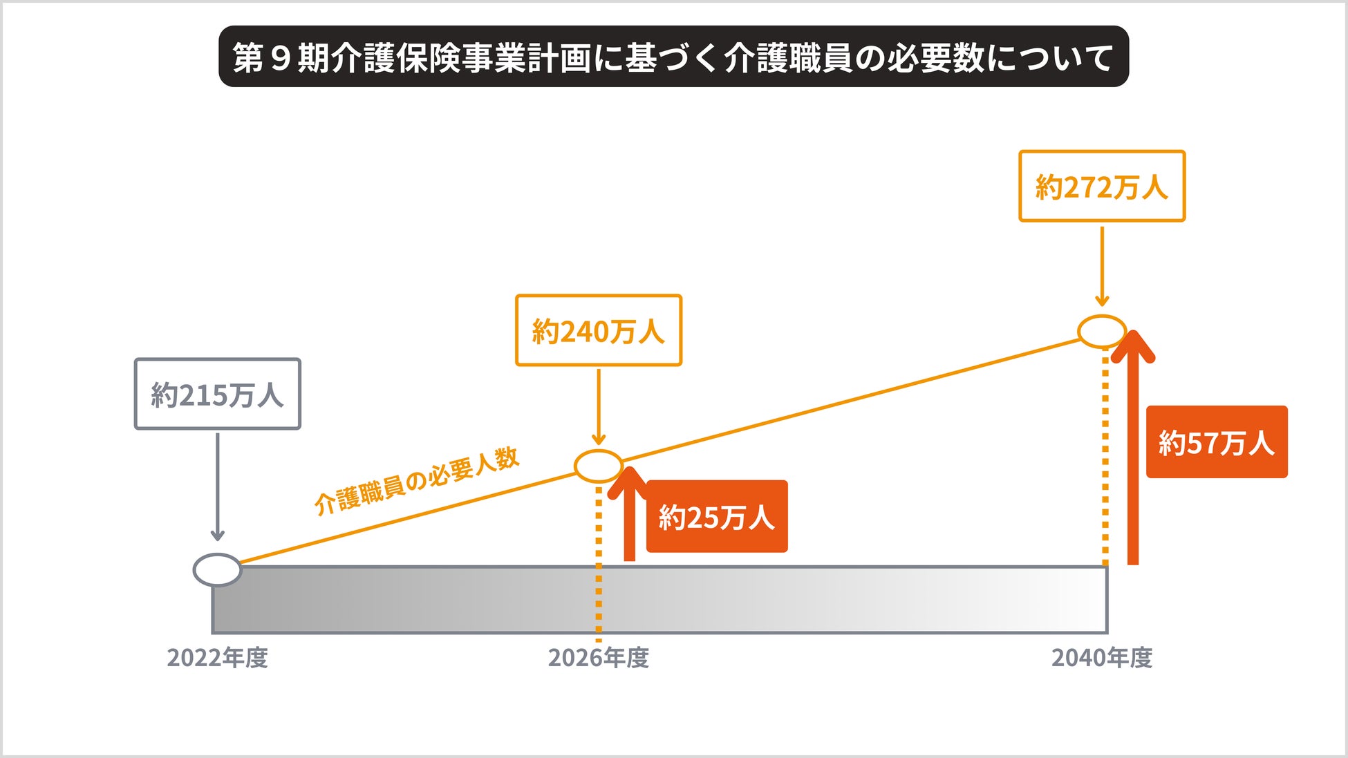 「現在よりも2026年度には約25万人、2040年度には57万人の介護職員の人材確保が必要と推計」