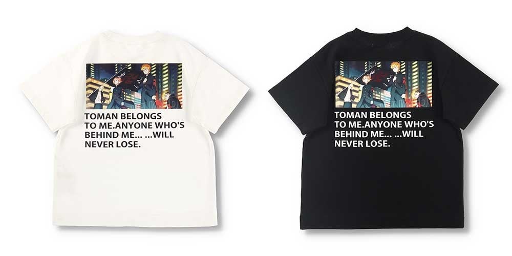 アニメエンディングのワンシーンとマイキーの名言をバックにプリントしたアイテム。前面には東京リベンジャーズのロゴ。
