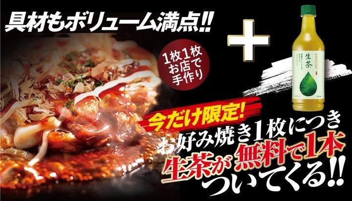 さらに、お好み焼きご注文の方に価格そのままで、生茶が1本付いてくる『生茶セット』を今だけ発売中!