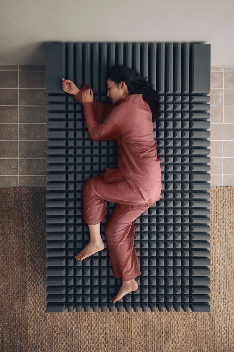 オンラインによるマットレス診断で、身長や体型、寝姿勢、睡眠のお悩み、好みなどの条件から、マットレスの硬さや配列など、100パターン以上の中からユーザーに最適な形状を自動判定し、それに合わせて一つひとつ提携工場でパーソナライズ製造していく「あなたのために作るマットレス」です。