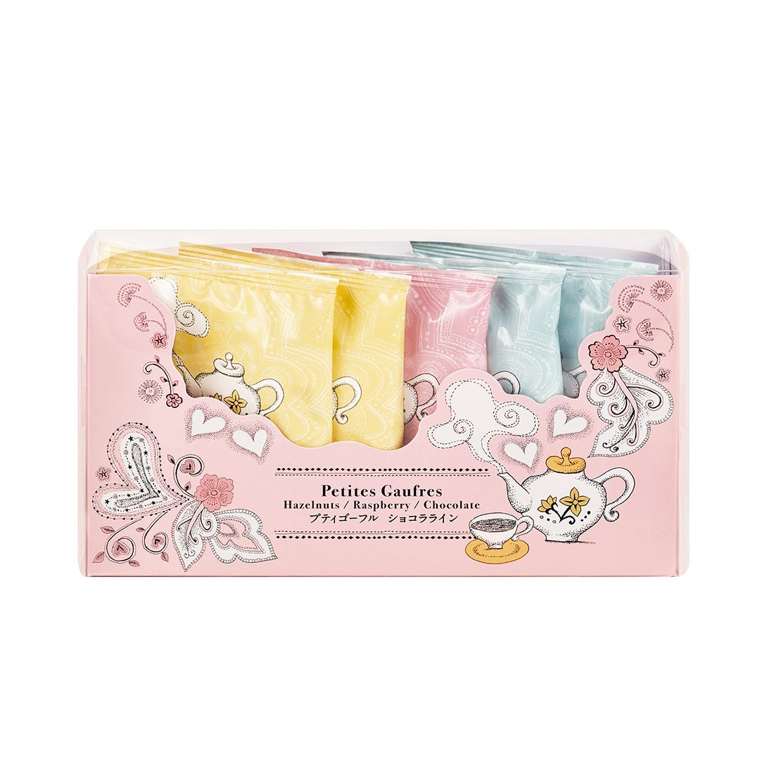 内容量:ヘーゼル2枚入×3袋、ラズベリー2枚入×3袋、ショコラゴーフル4枚