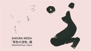 生活の中に生きる書を提案する池田櫻を中心に、赤池艸硲、0歳から4歳の子供たち、櫻書屋50名による書の展覧会。「思色の活性」という本展のタイトルには、自分の「思い」を筆にこめて、自由に「活性」させて表現しよう、という意味が込められています。無形文化財でもある書道ですが、池田は肩ひじ張った書ではなく、生活の中に結びついたアートとして書を捉え直します。会場は「思色のコンスタレーション」「二人」「くらしを彩る」の3つのテーマで書への向き合い方を示します。
