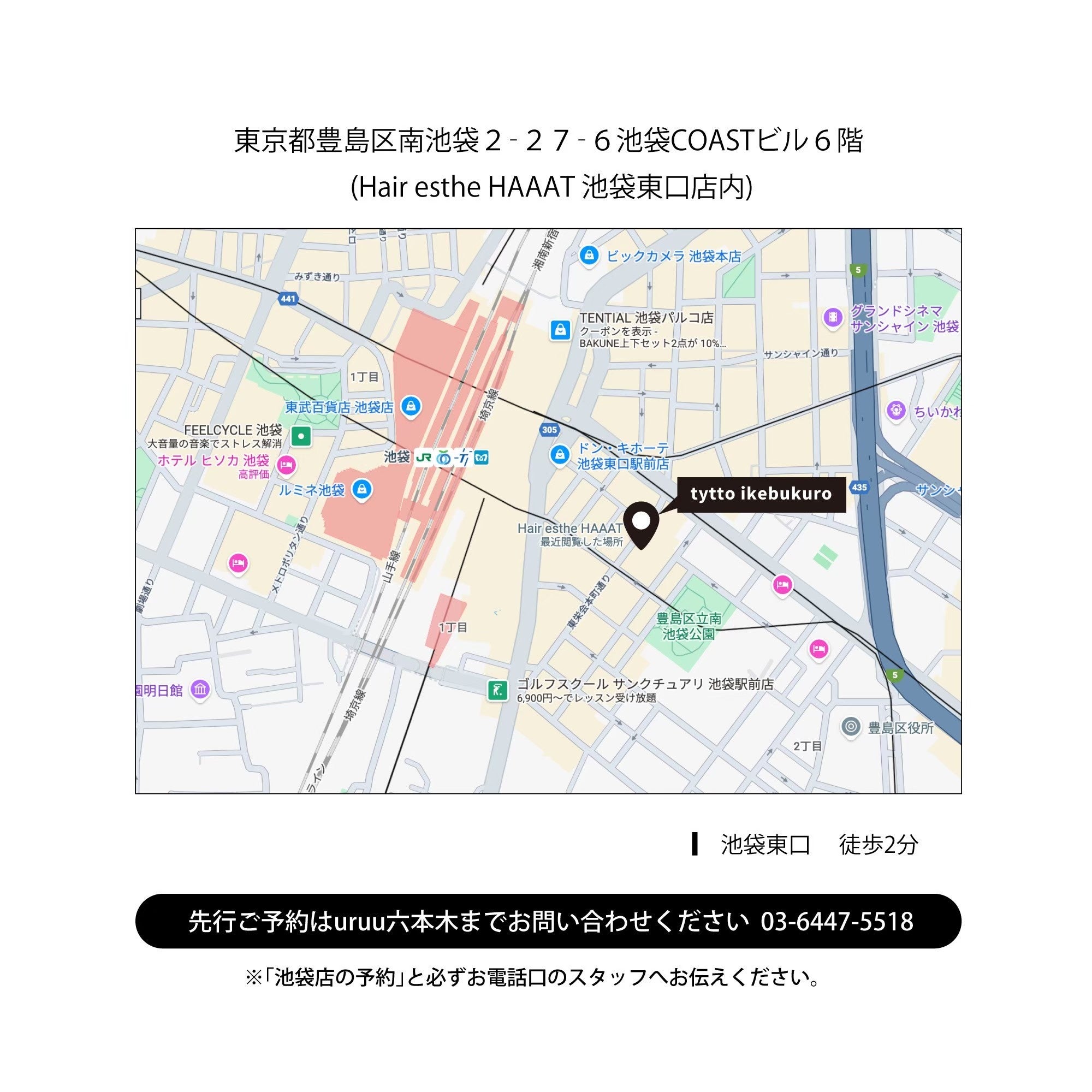 tytto by uruu池袋店は、池袋駅東口から徒歩2分。