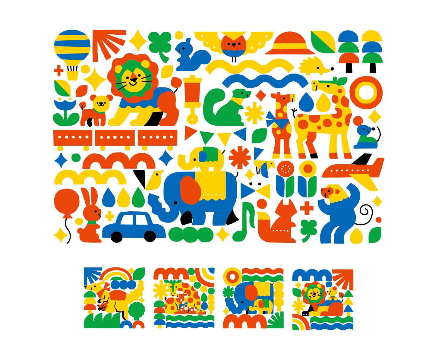 ポップでカラフルなアニマルデザインの中に、サスペンションモチーフを取り入れた描きおろしです。