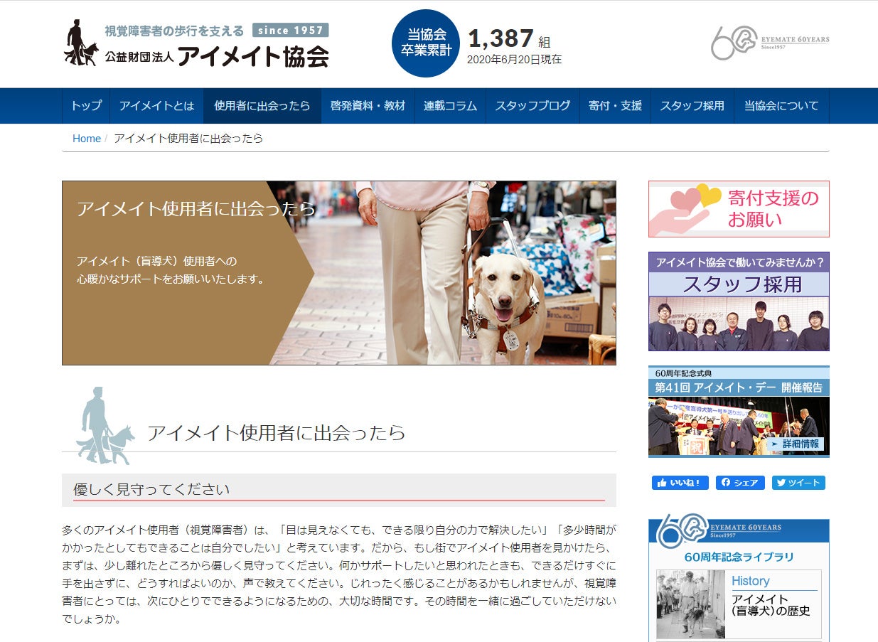 - 街中でアイメイト使用者や視覚障害者に出会ったら? ウェブサイトで学べるコンテンツ