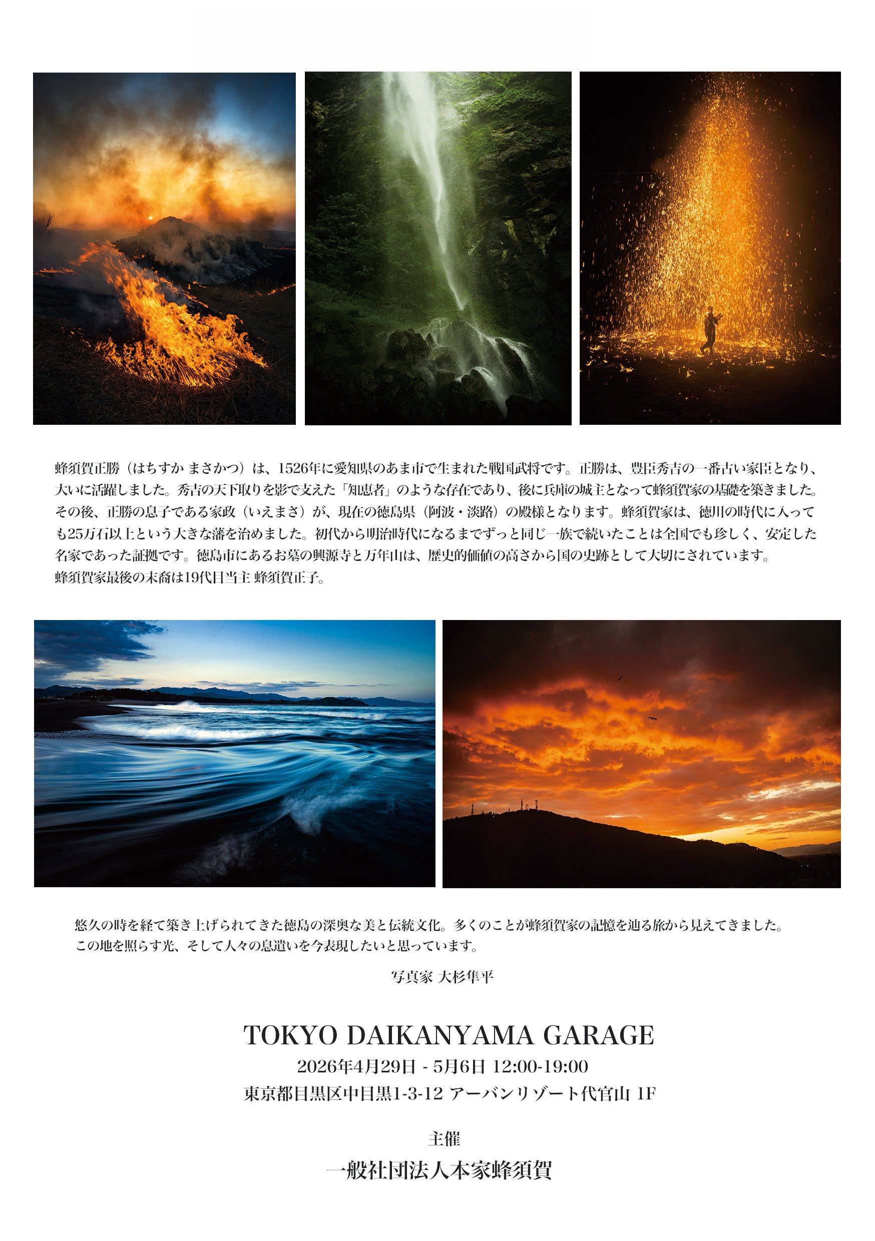 写真家・大杉隼平は、2026年4月29日(水)より東京・DAIKANYAMA GARAGE SPACE1にて、戦国武将・蜂須賀正勝(小六)の生誕500年を記念した特別展示を開催いたします。