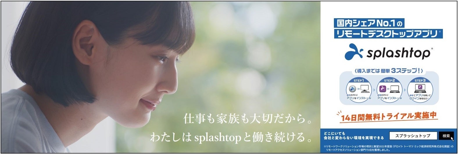 「仕事も家庭も大切だから。わたしはsplashtopと働き続ける。」編を放映