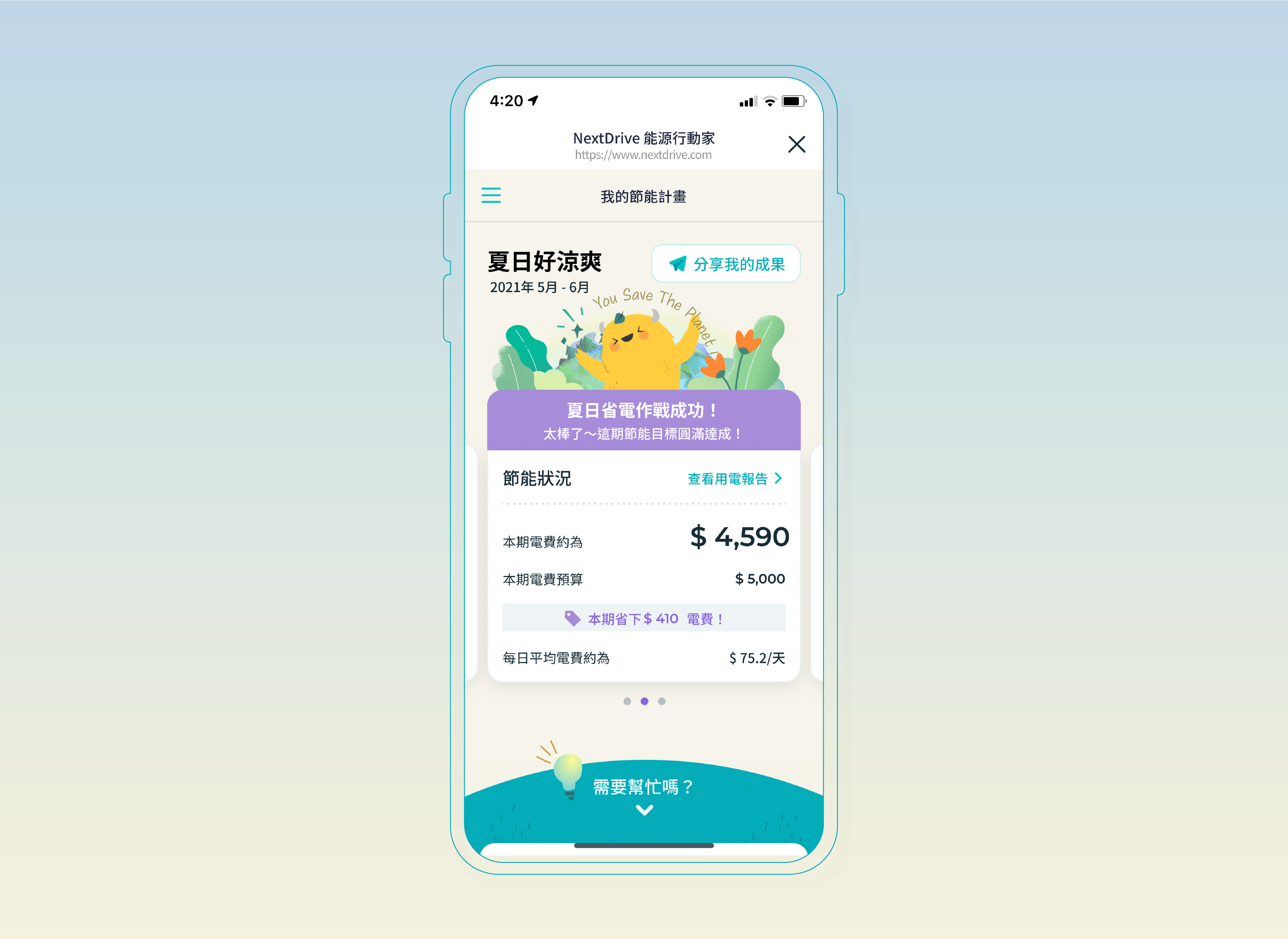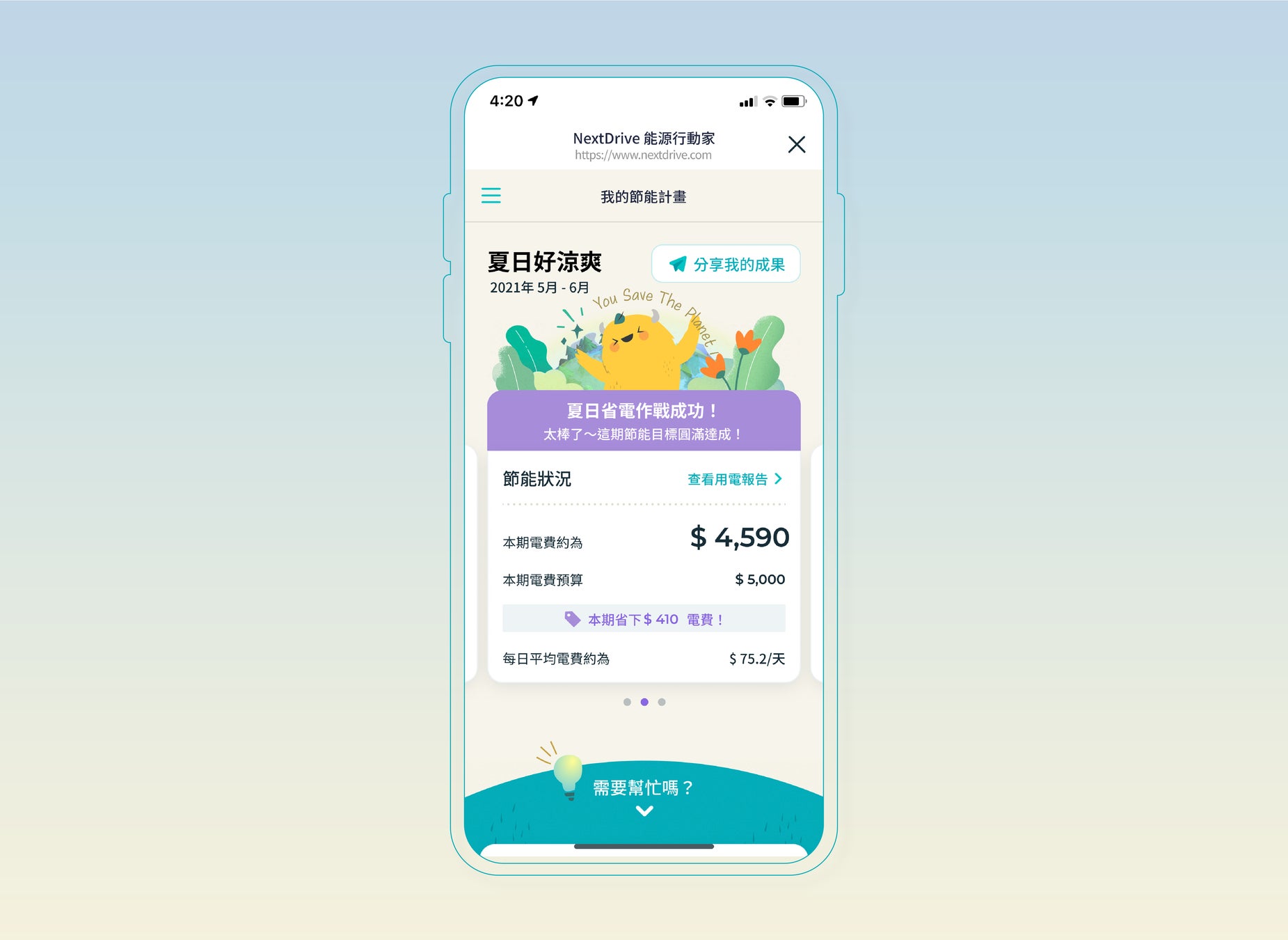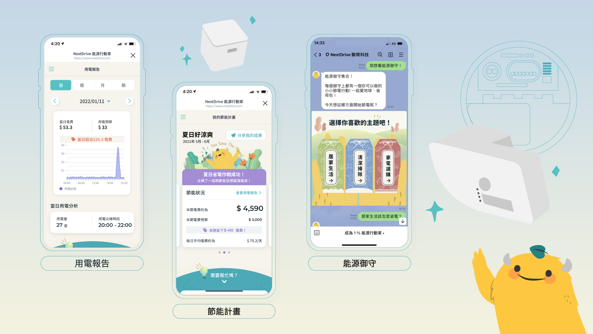 NextDriveが台湾電力と共同で推進する本キャンペーン「1% 能源行動家(1%のエネルギー節約)」では、LINEを利用してスマートフォンで常に電気使用状況を確認することができる家庭向けエネルギー管理サービスを提供します。