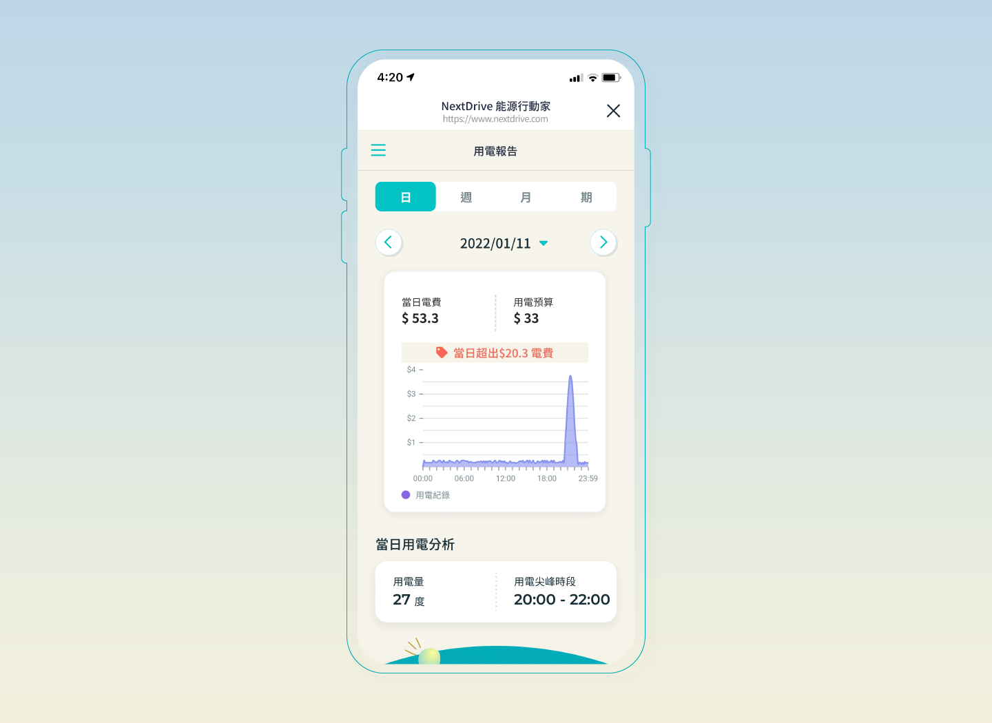 NextDriveの家庭用エネルギー管理システムは、毎日の電力消費のレポートを見たり、電気代を確認したりできます。