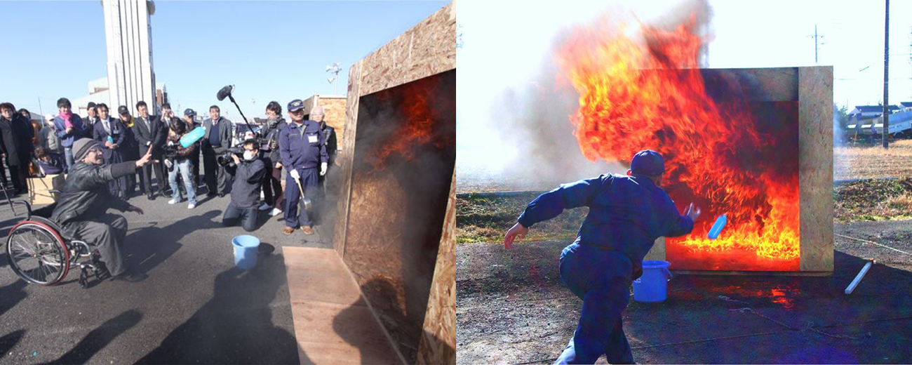 使い方は炎に向かって投げ入れるだけ。子供からお年寄りまで、誰でも簡単に消火を行うことができます。