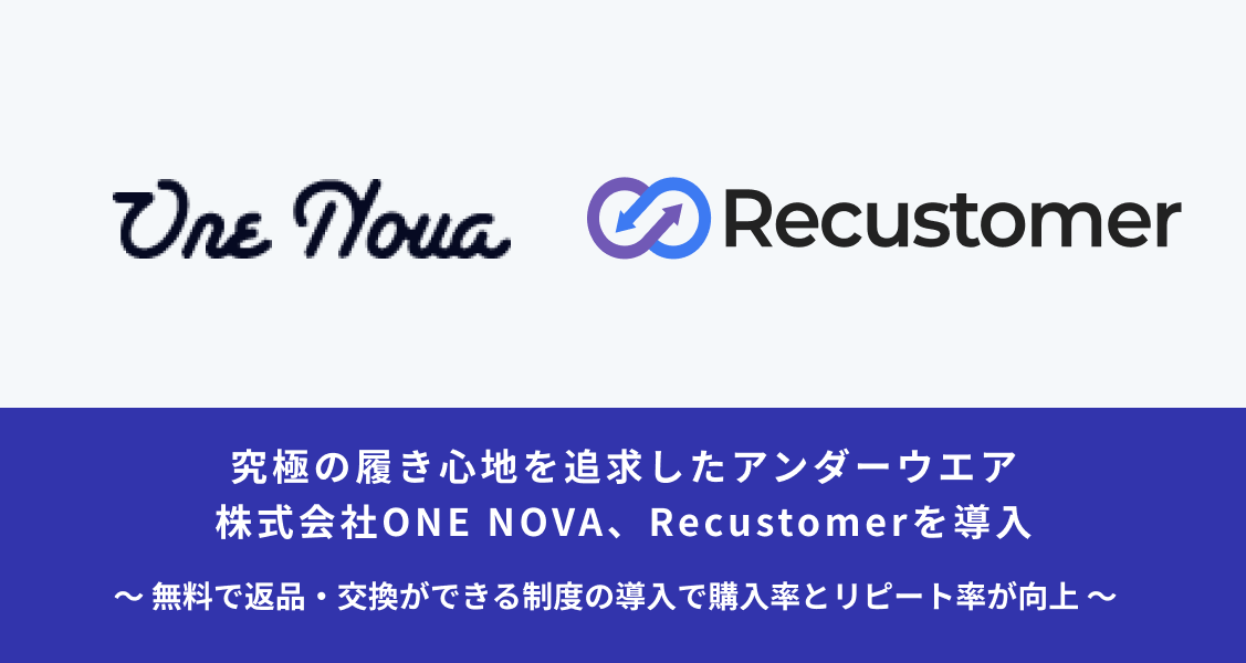 Recustomer株式会社(本社:東京都千代田区、代表取締役:柴田 康弘)が運営する返品・交換・注文キャンセル自動化ツール「Recustomer(リカスタマー)」が、究極の履き心地を追求したAdventure Boxer Brief「One Nova(ワンノバ)」を運営する株式会社ONE NOVA(本社:東京都世田谷区、代表取締役CEO:高山 泰歌)に1月に導入、運用開始いただきました。今回のRecustomer導入により、“安心して購入できること”から購入率と“満足して購入いただいたこと”によるリピート率の向上を後押ししています。