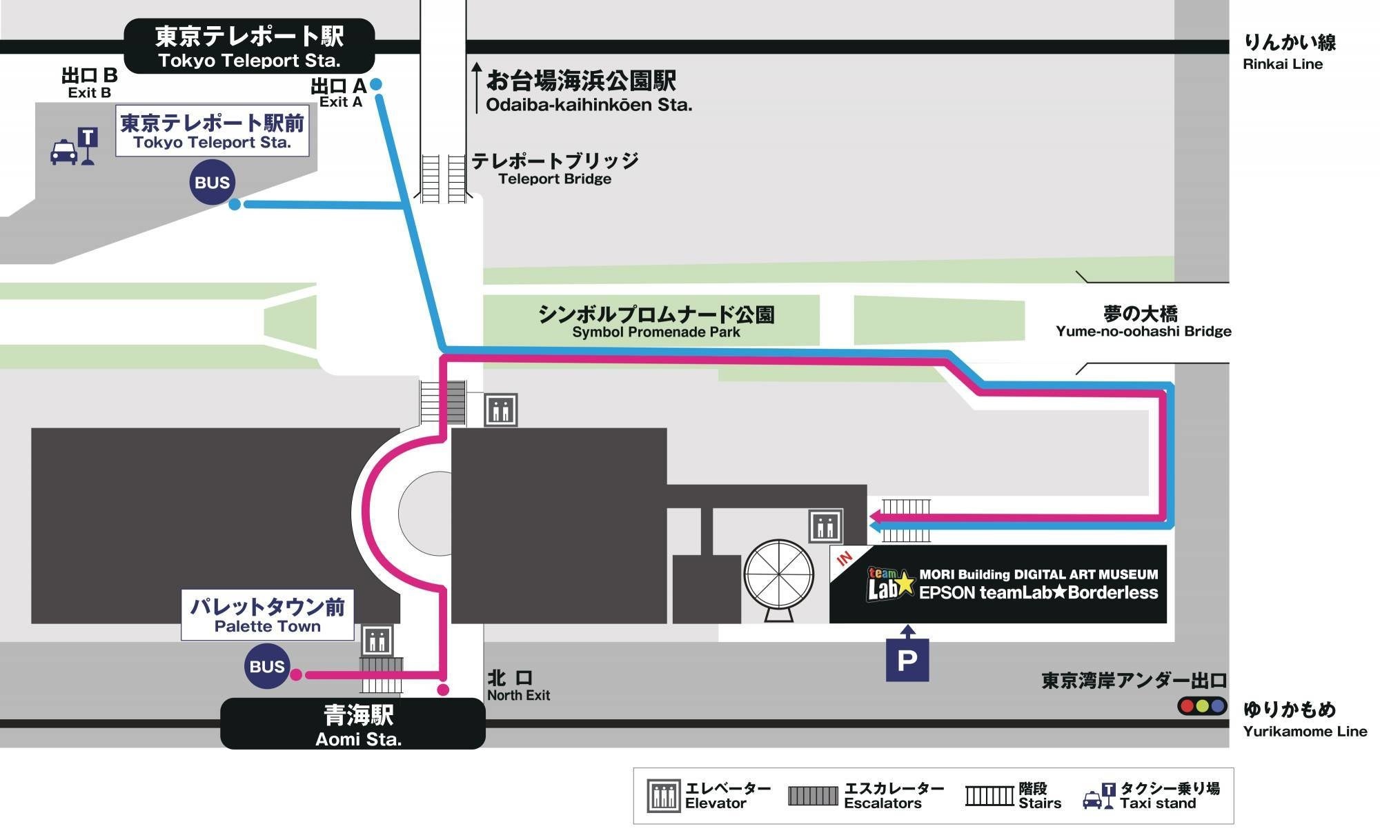 パレットタウンの開発事業の一部進捗に伴い、最寄り駅(東京テレポート駅・青海駅)から当館までのアクセスルートが、4月1日(金)より変更となりました。